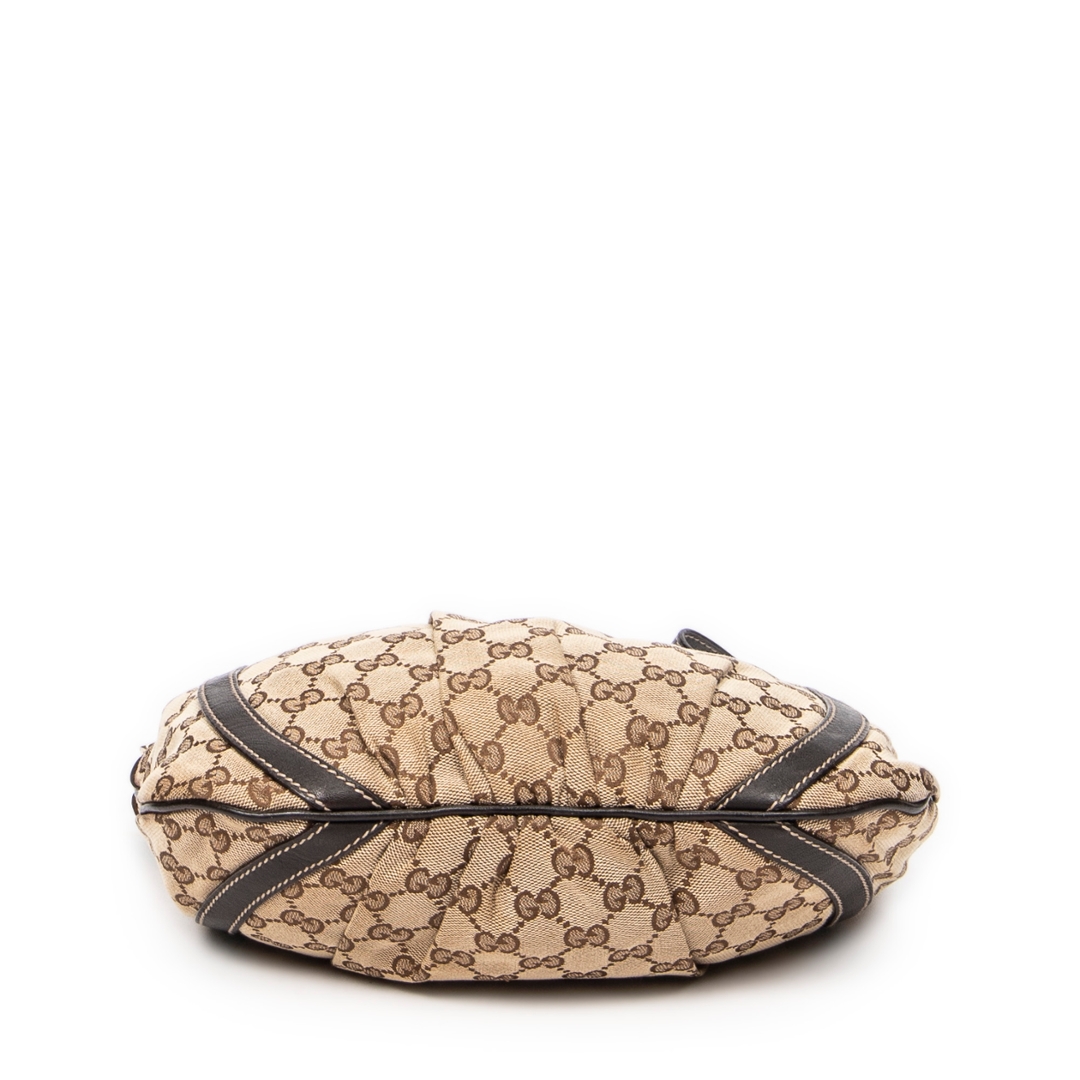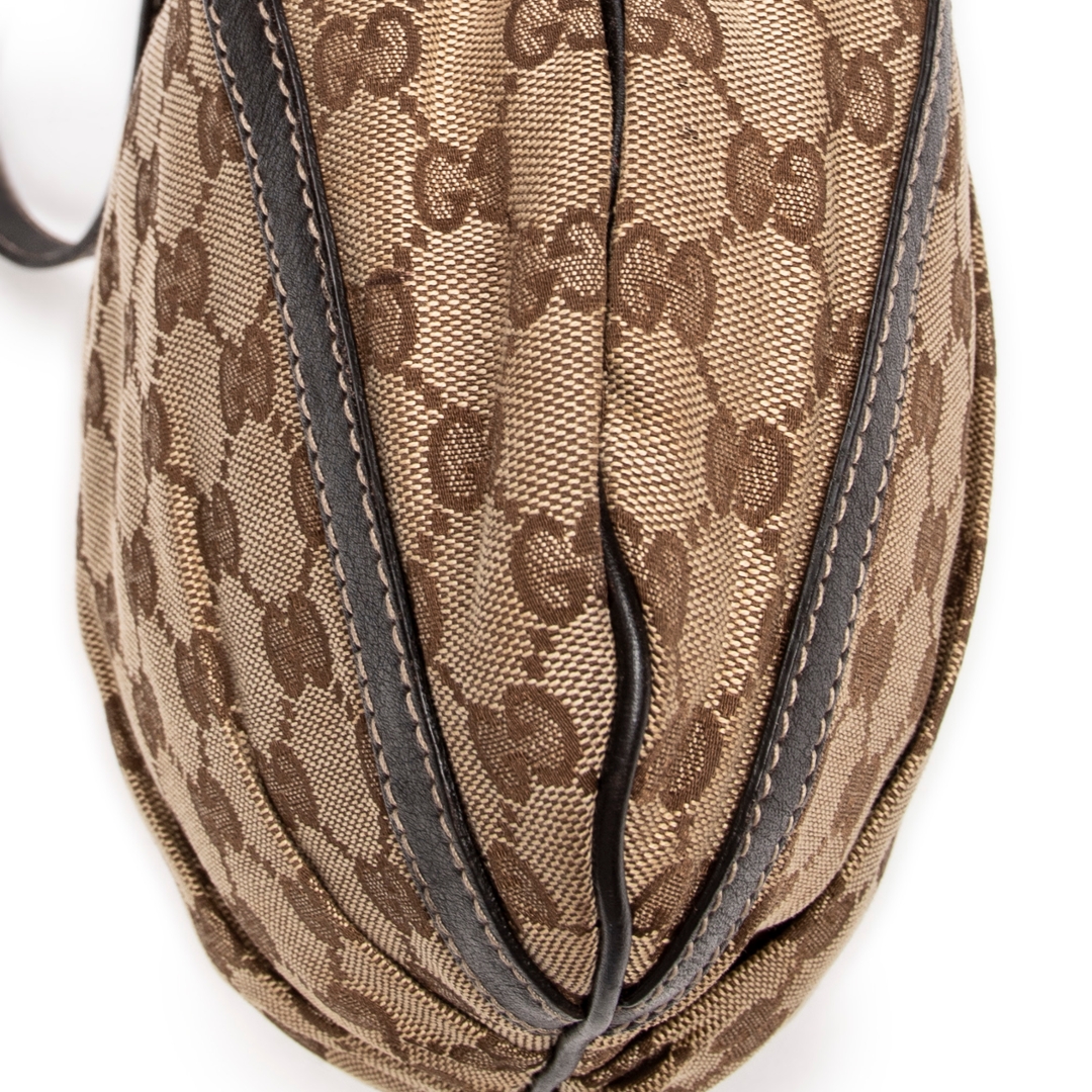 Measuring approximately 25cm in height and 30cm in width, this bag offers a practical yet stylish silhouette perfect for daily wear. The adjustable leather strap ensures versatile styling, while the spacious interior provides ample room for essentials. Its canvas exterior reflects Gucci’s enduring heritage of luxury and durability.