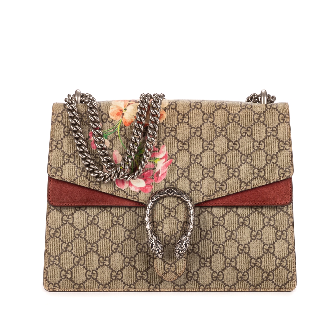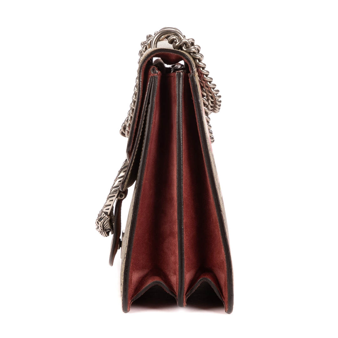 A vintage Gucci beige/red coated canvas Dionysus bag with a certificate of authenticity, Approximately 21cm height, 29cm width.