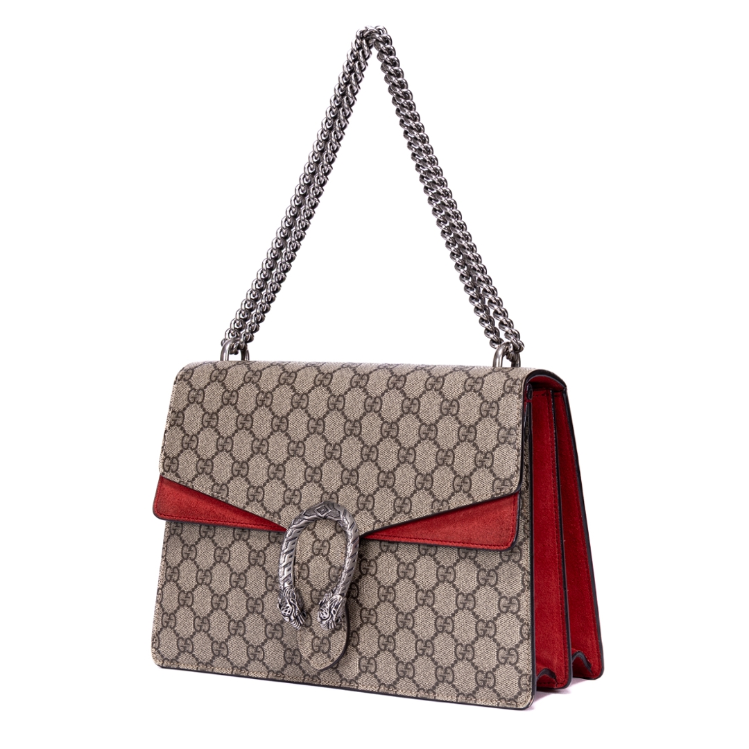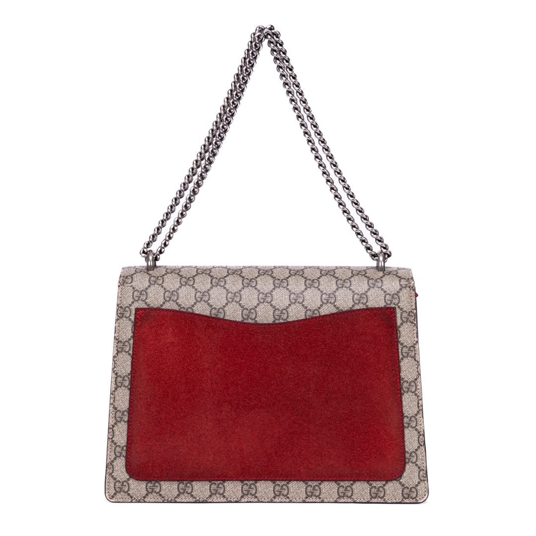 A vintage Gucci beige/red coated canvas Dionysus bag with a certificate of authenticity, Approximately 22cm height, 30cm width.