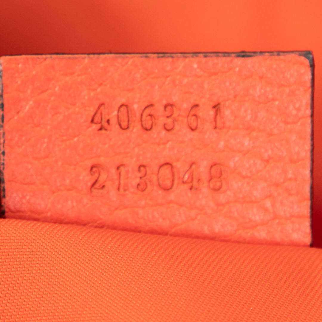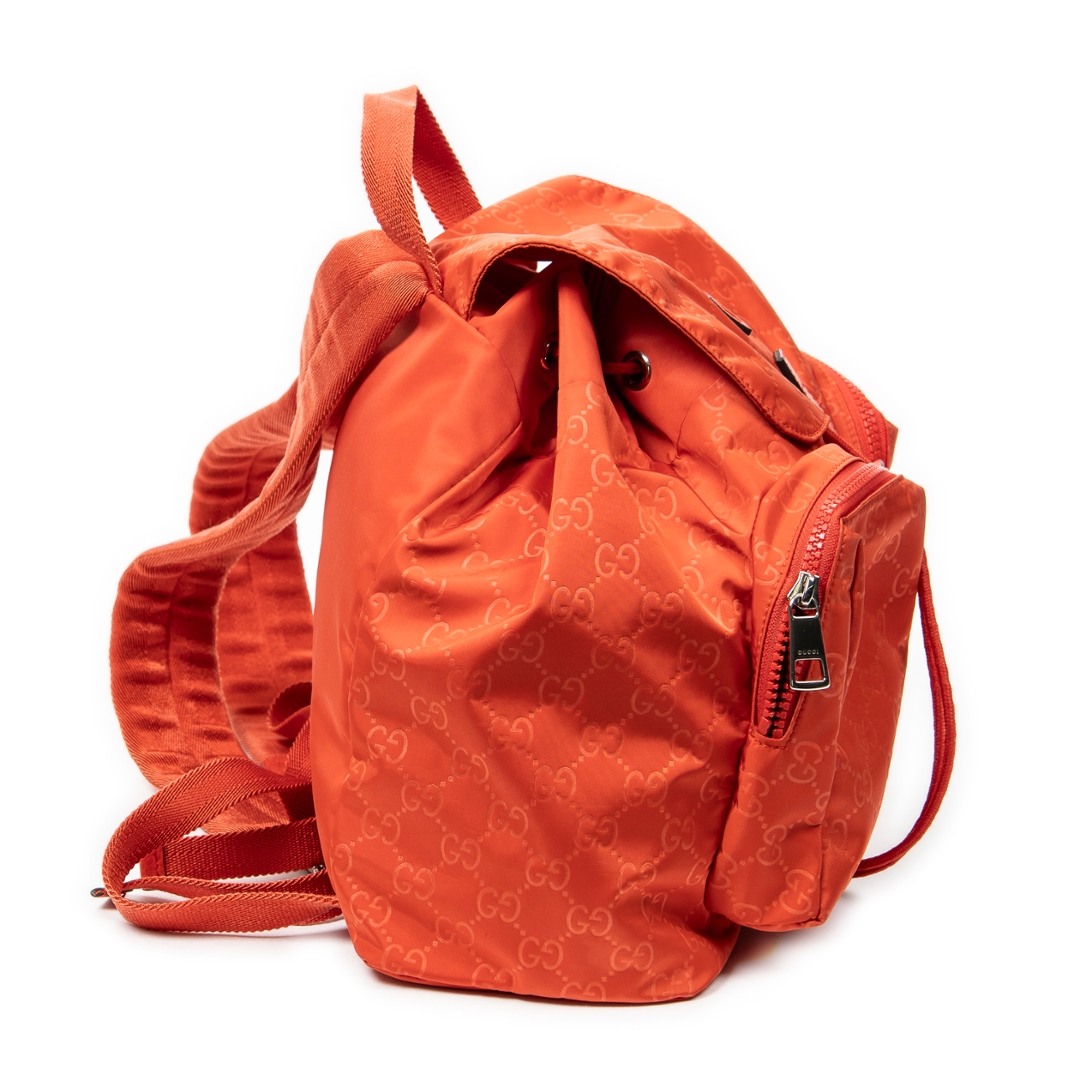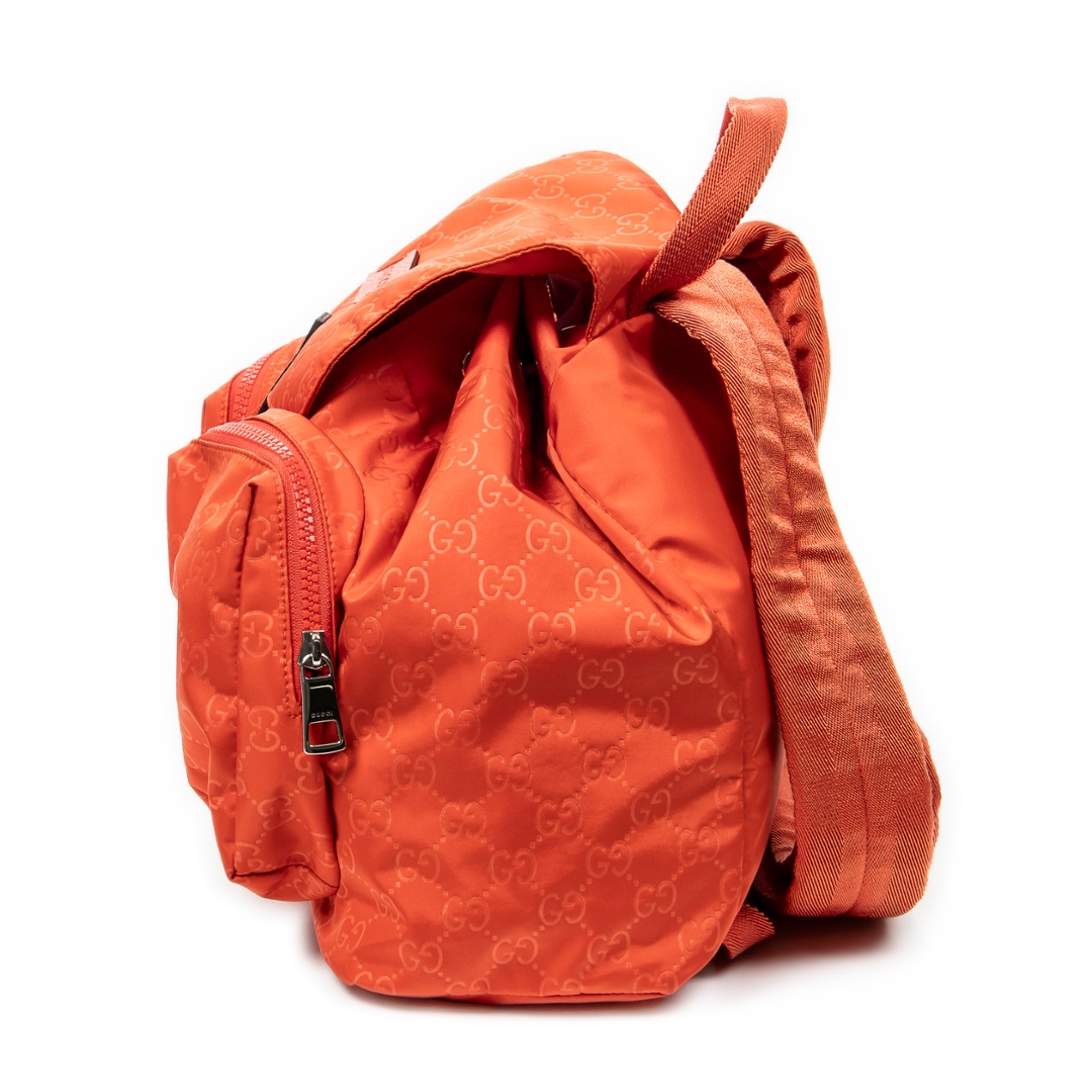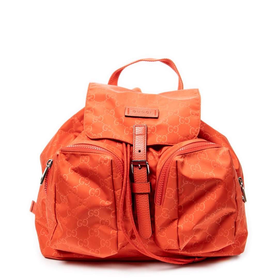 A vintage Gucci orange canvas Double Front Pocket Backpack with a certificate of authenticity, Approximately 28cm height, 31cm width.