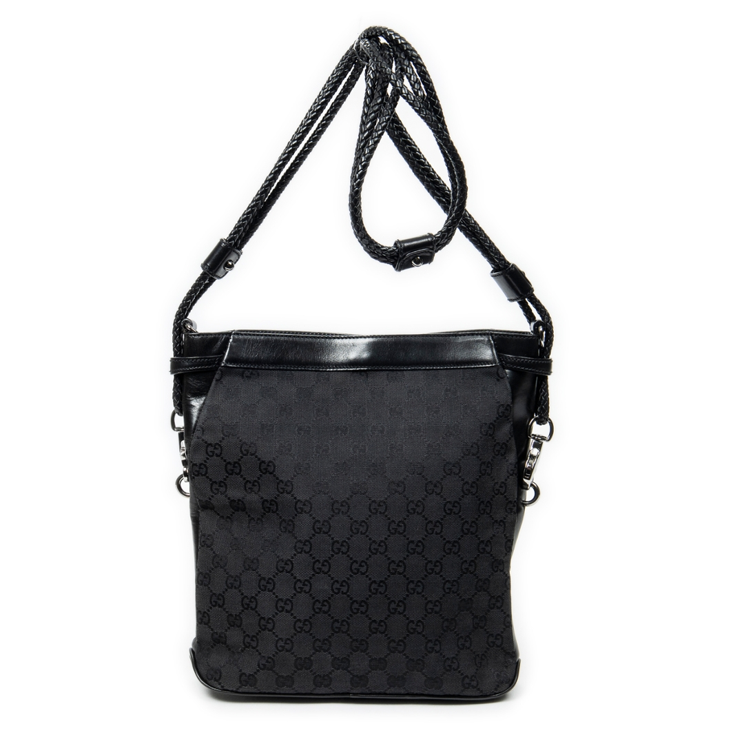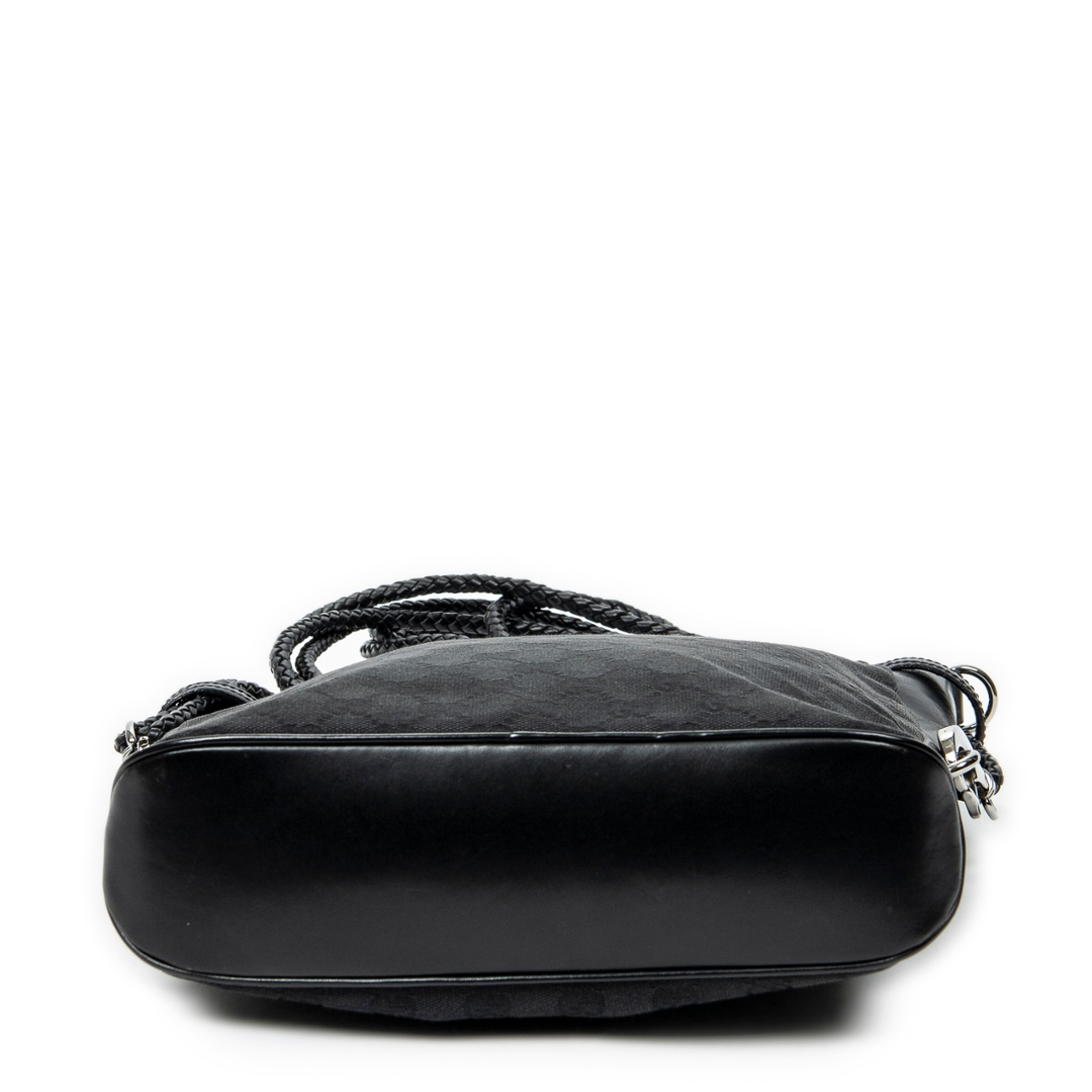 A vintage Gucci black canvas Front Pocket Braided Tote bag with a certificate of authenticity. Approximately 30cm height, 29cm width.