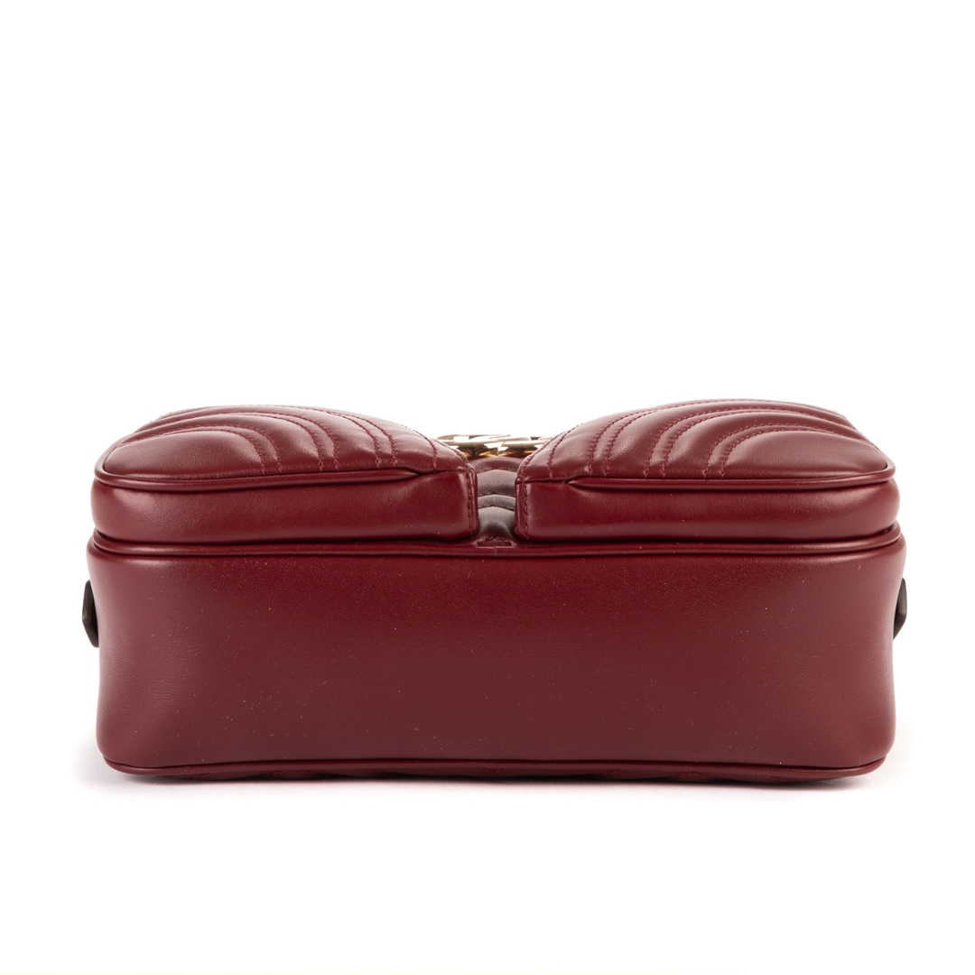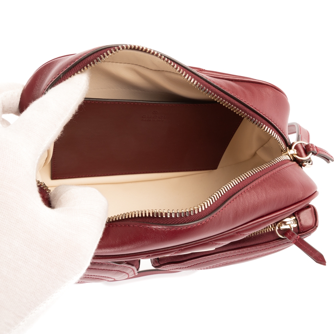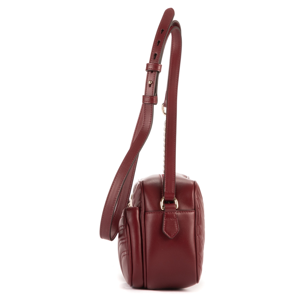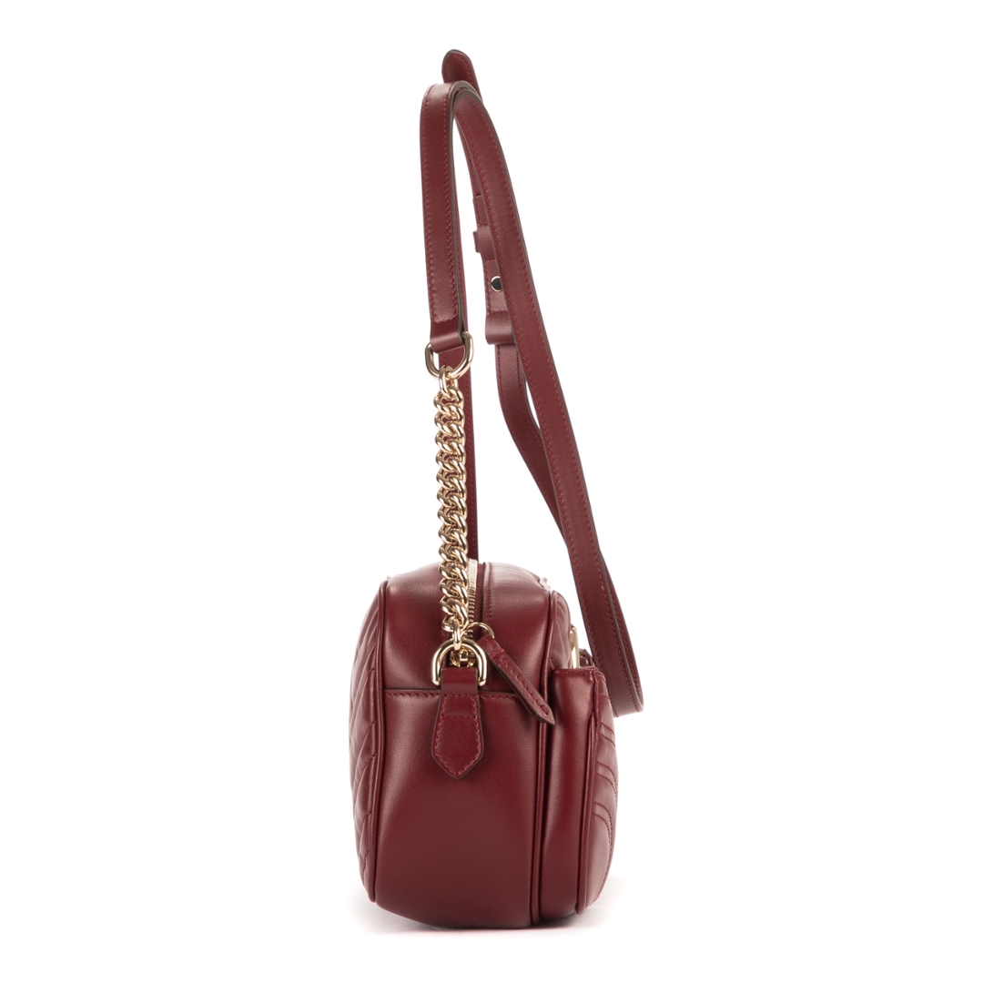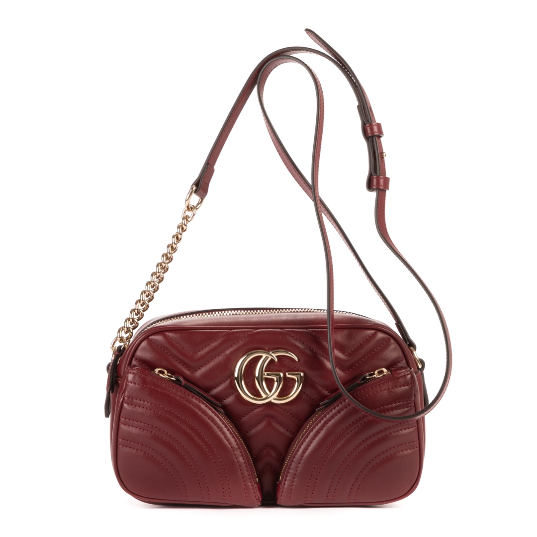 A vintage Gucci burgundy calf leather Front Pockets Marmont bag with a certificate of authenticity, Approximately 15cm height, 24cm width.
