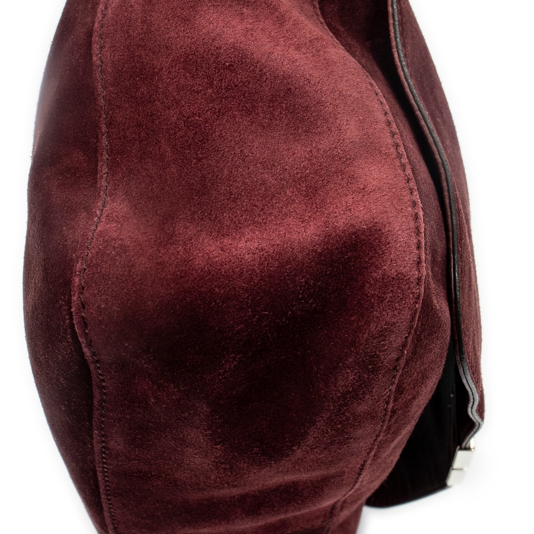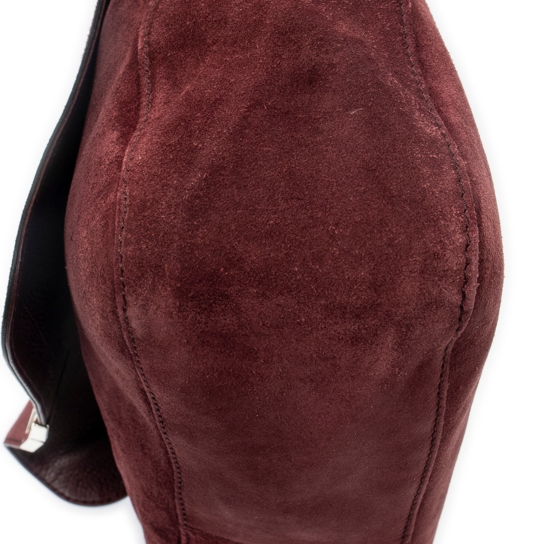 A vintage Gucci G Square Flap Messenger bag captures a perfect blend of understated luxury and modern edge. Crafted in rich burgundy calf leather with a refined suede-like finish, it showcases the brand’s impeccable craftsmanship and timeless design sensibility. The structured flap front is adorned with a distinctive silver-tone G clasp — an iconic detail that subtly nods to Gucci’s heritage while keeping the aesthetic sleek and contemporary.