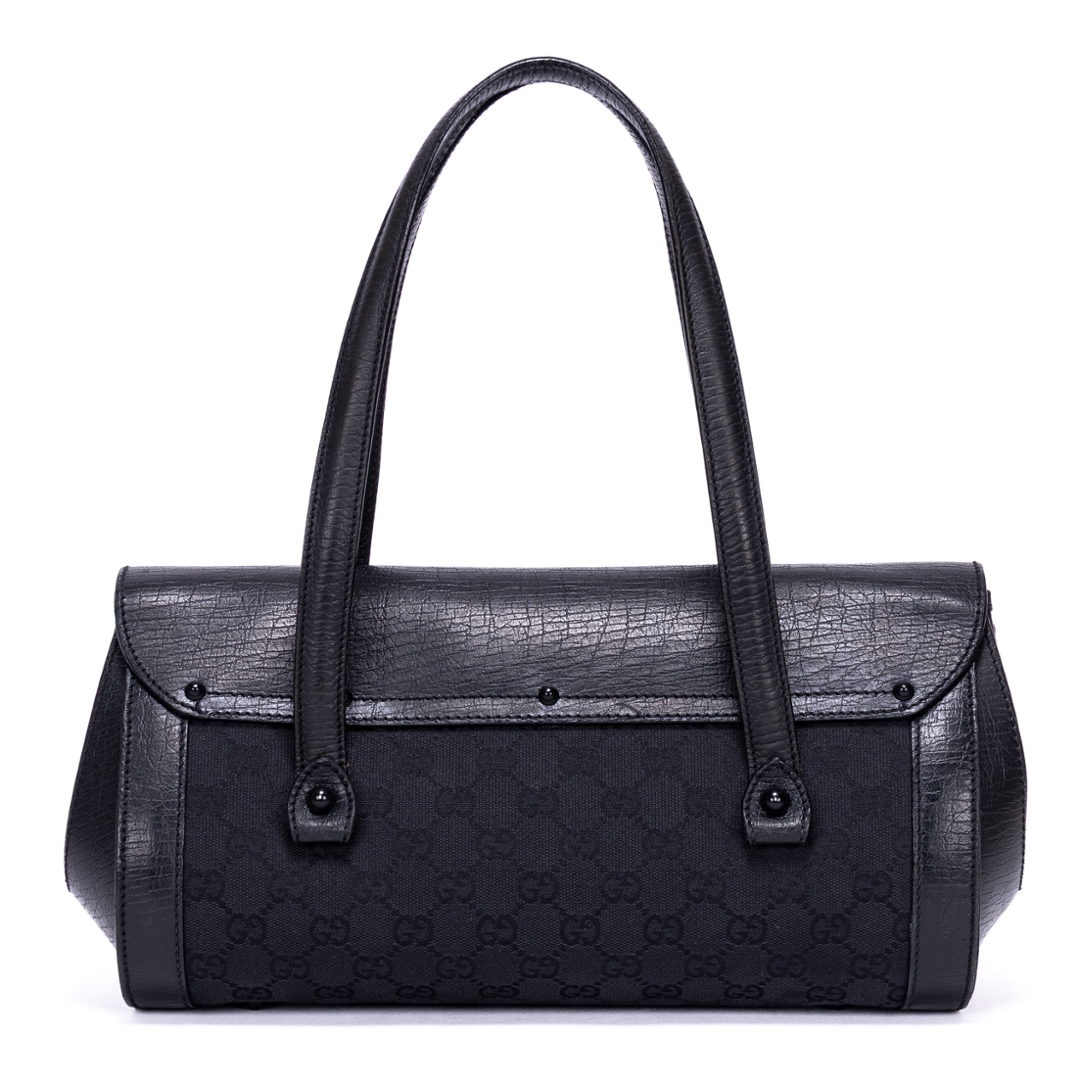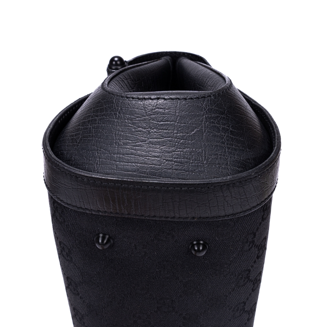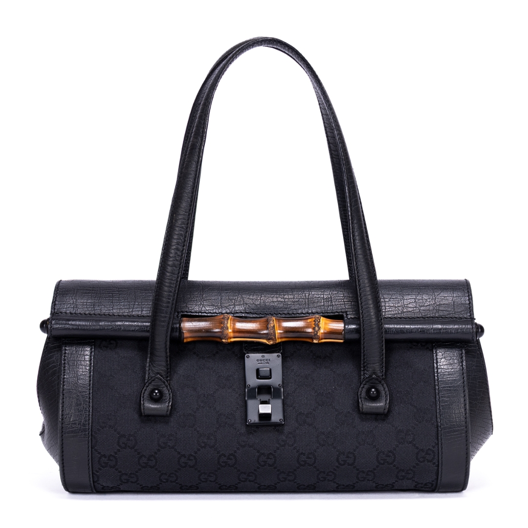 A vintage Gucci black calf leather GG Bamboo Bullet bag with a certificate of authenticity, Approximately 18cm height, 32cm width.