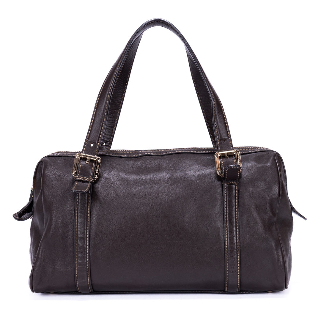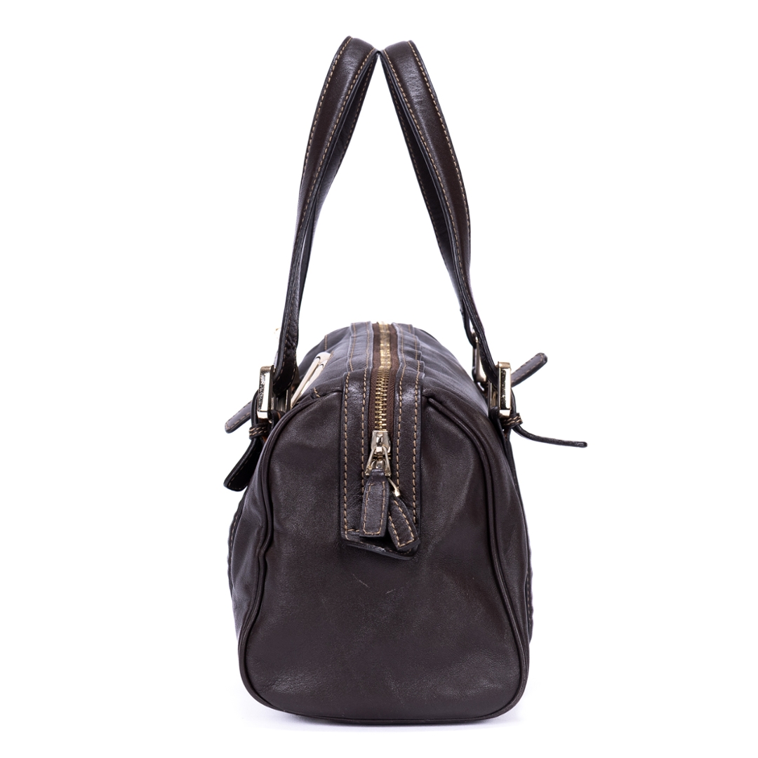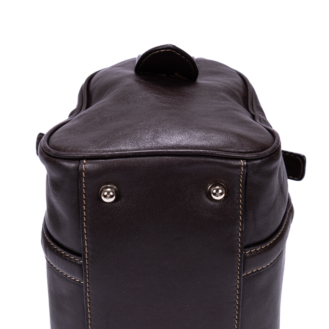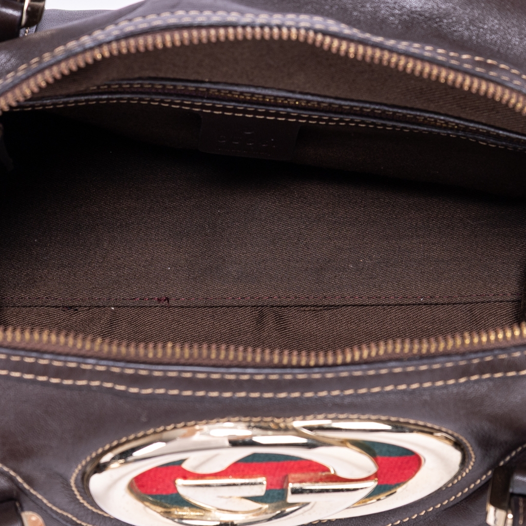 A vintage Gucci dark brown calf leather GG Interlocking Tote bag with a certificate of authenticity, Approximately 18cm height, 32cm width.
