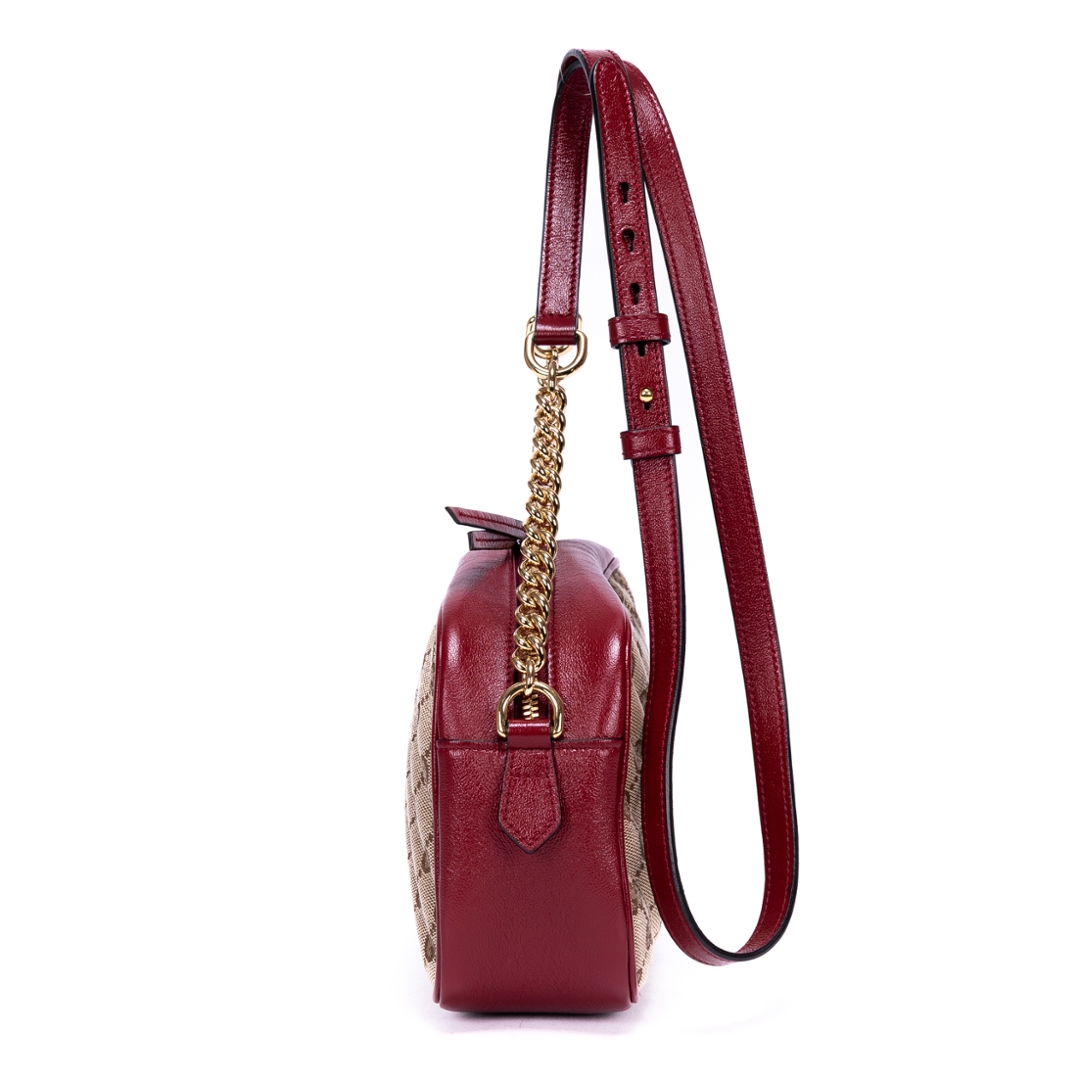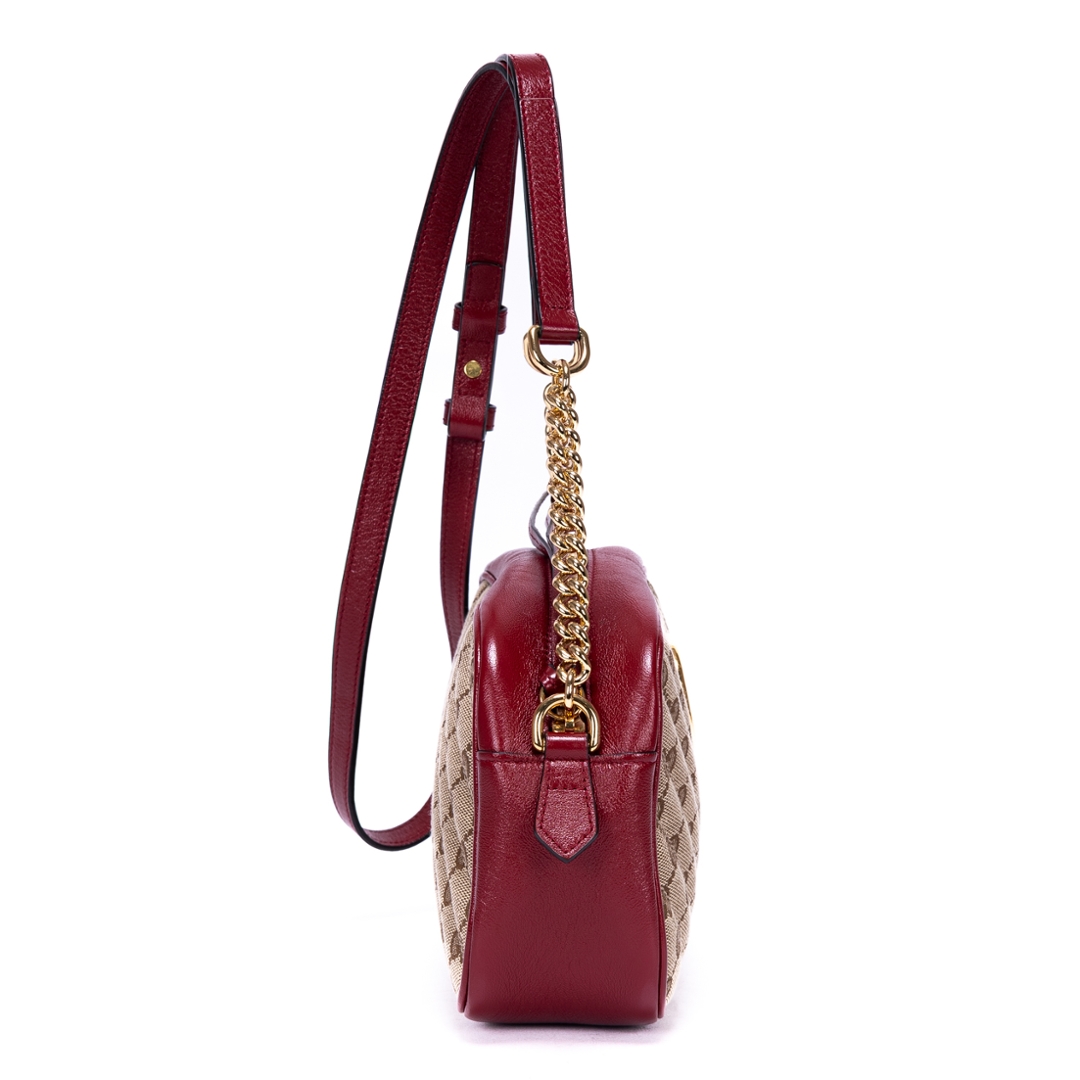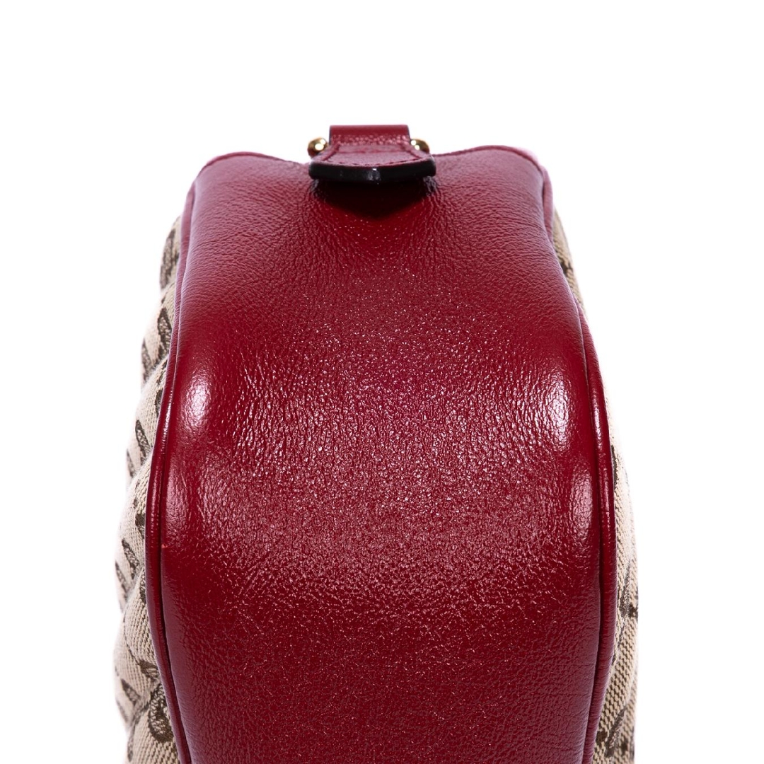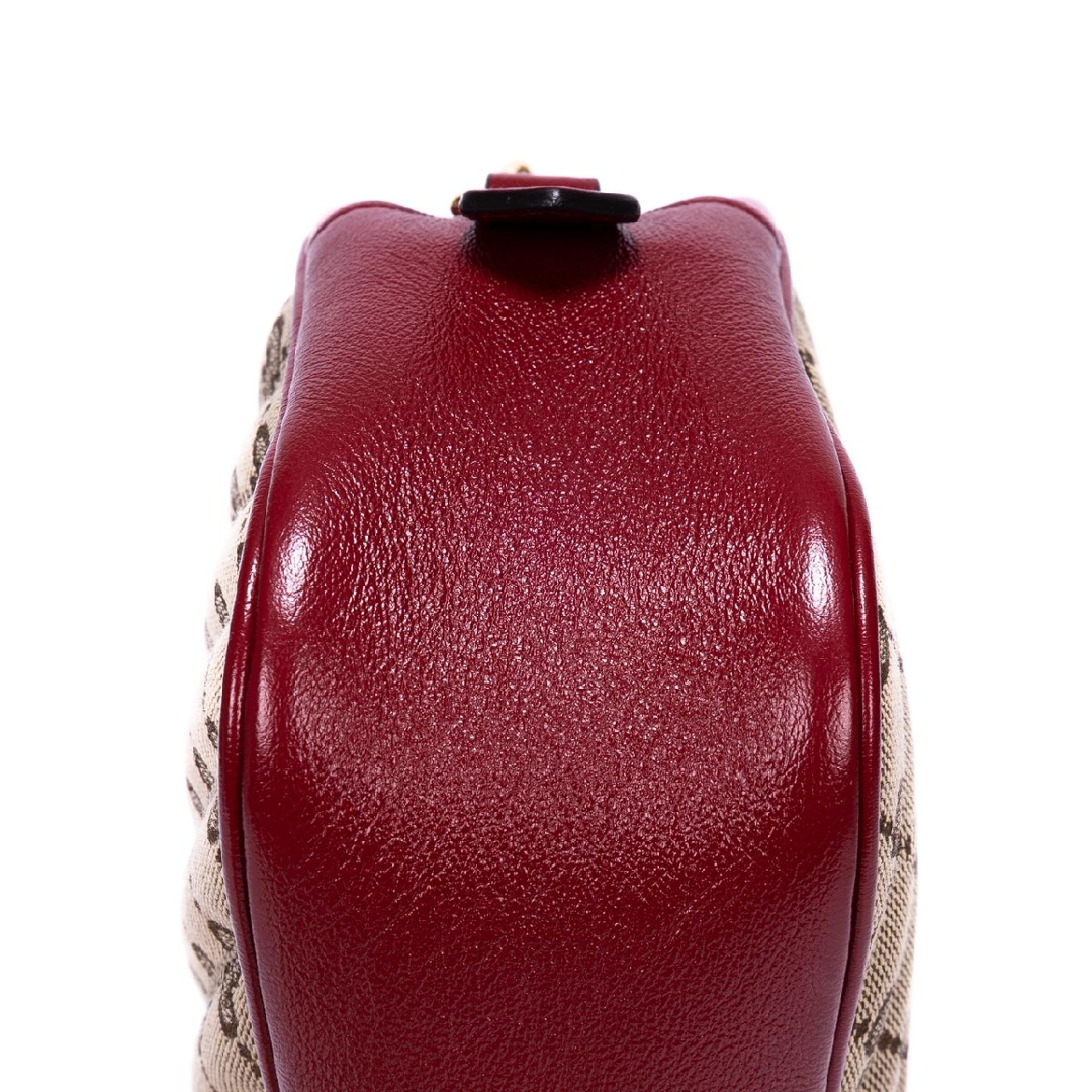 A vintage Gucci beige/red calf leather GG Marmont bag with a certificate of authenticity, Approximately 15cm height, 25cm width.