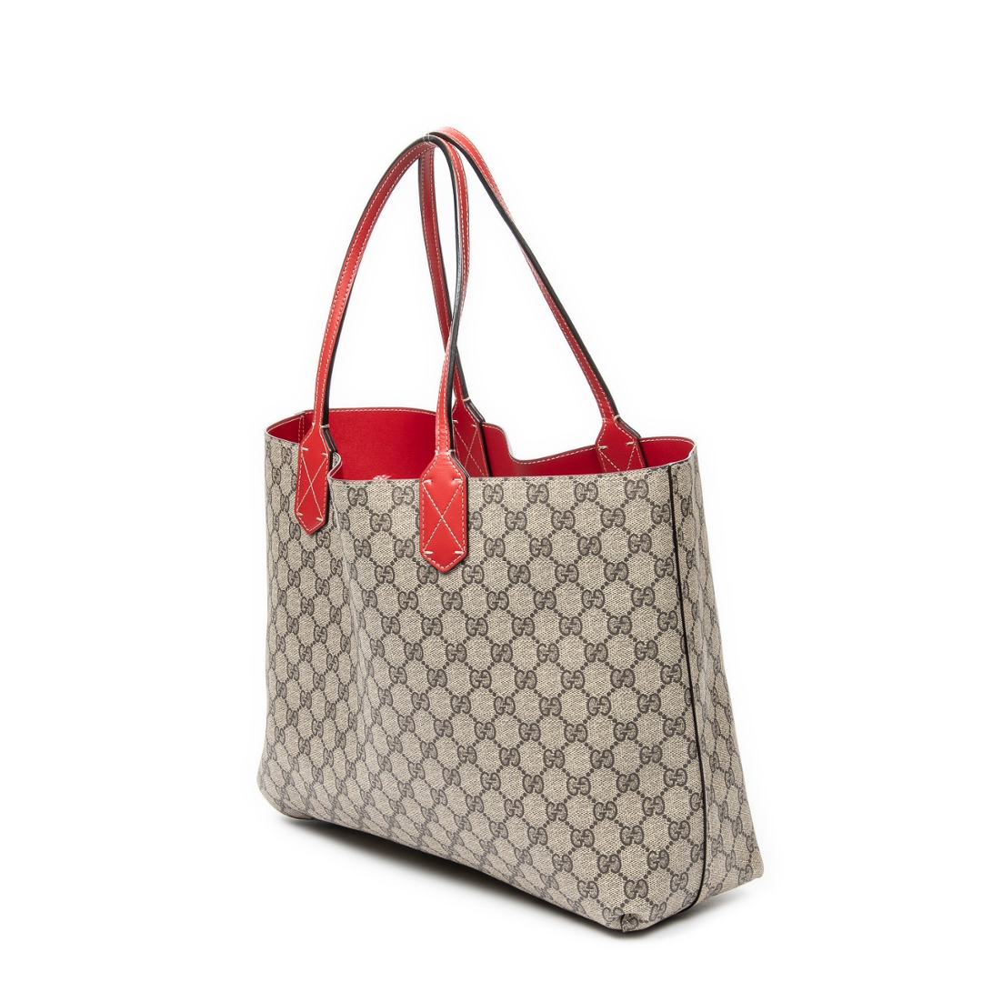 A vintage Gucci beige/red coated canvas GG Reversible Tote bag with a certificate of authenticity. Approximately 29cm height, 35cm width.