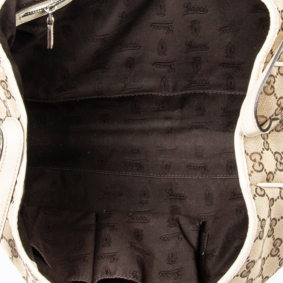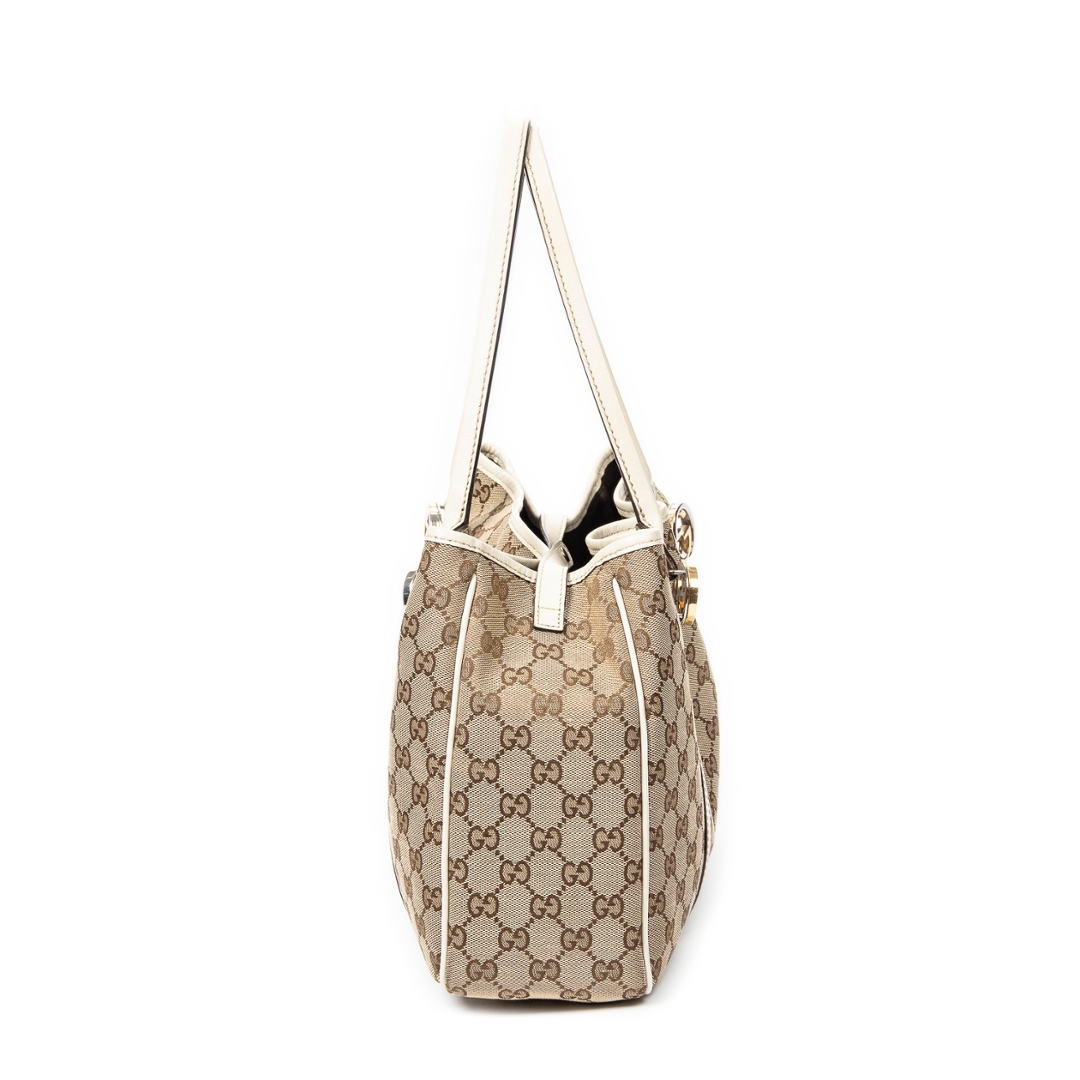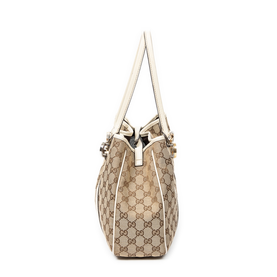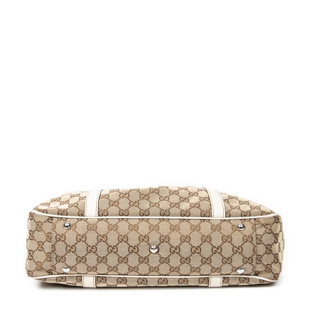 A vintage Gucci beige canvas GG Twins Tote bag with a certificate of authenticity, Approximately 24cm height, 37cm width.
