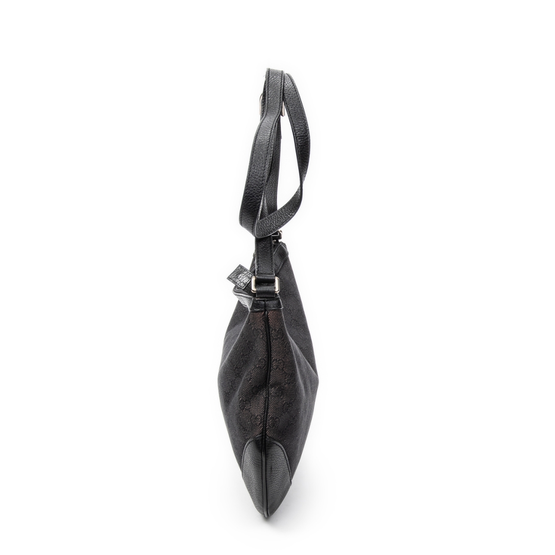 A vintage Gucci black canvas Half Moon Messenger bag with a certificate of authenticity, Approximately 30m height, 40cm width.