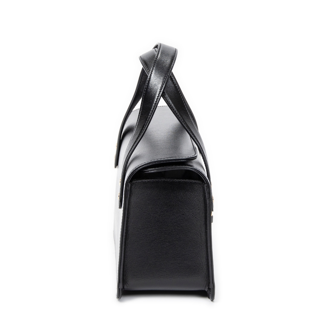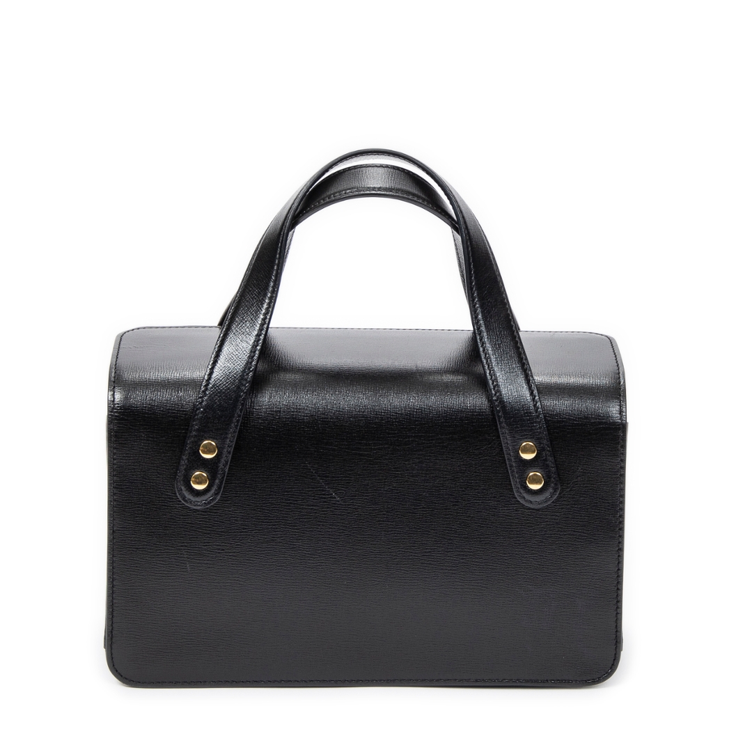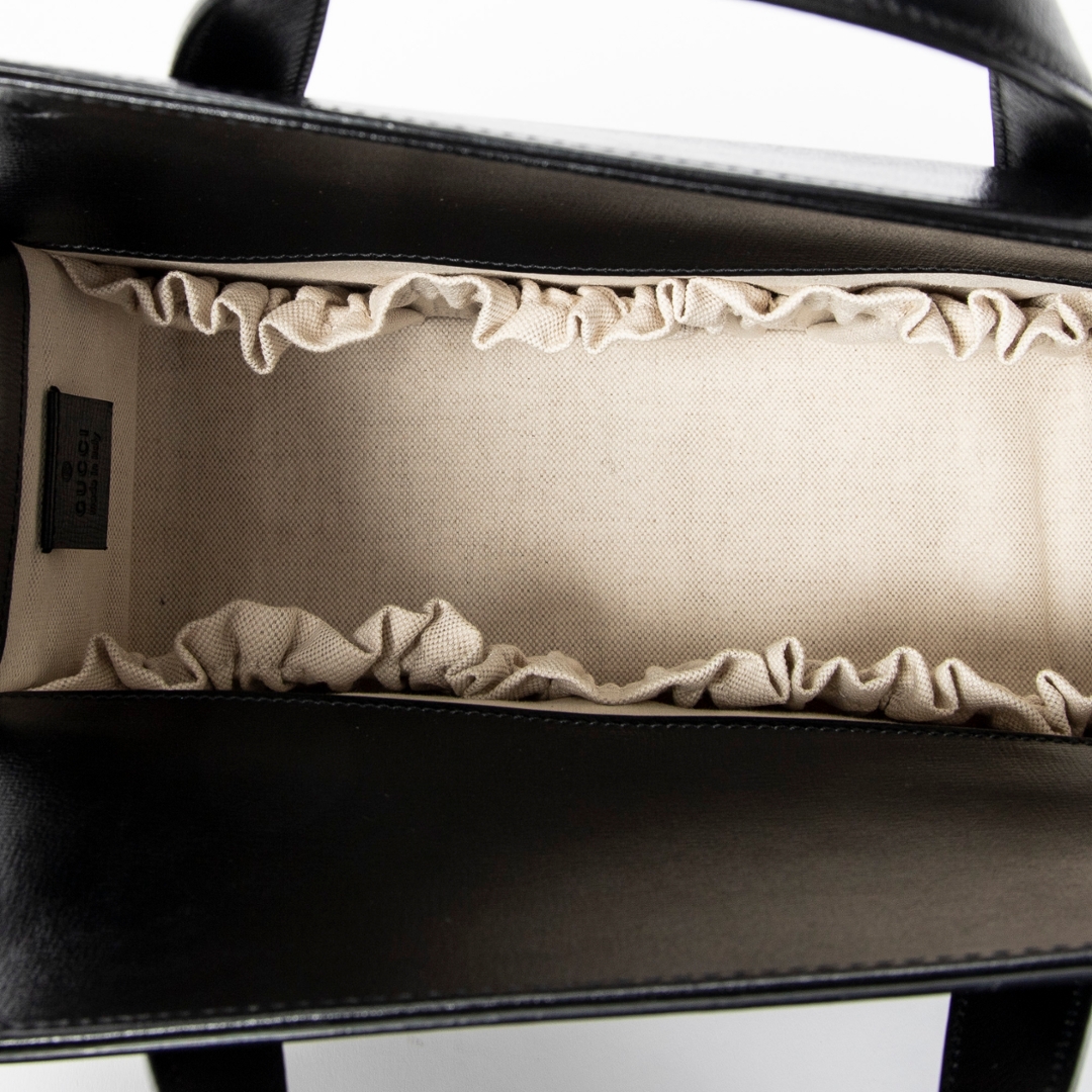 A vintage Gucci black calf leather Horsebit 1955 Fold Over Top Handle bag with a certificate of authenticity. Approximately 17cm height, 27cm width.