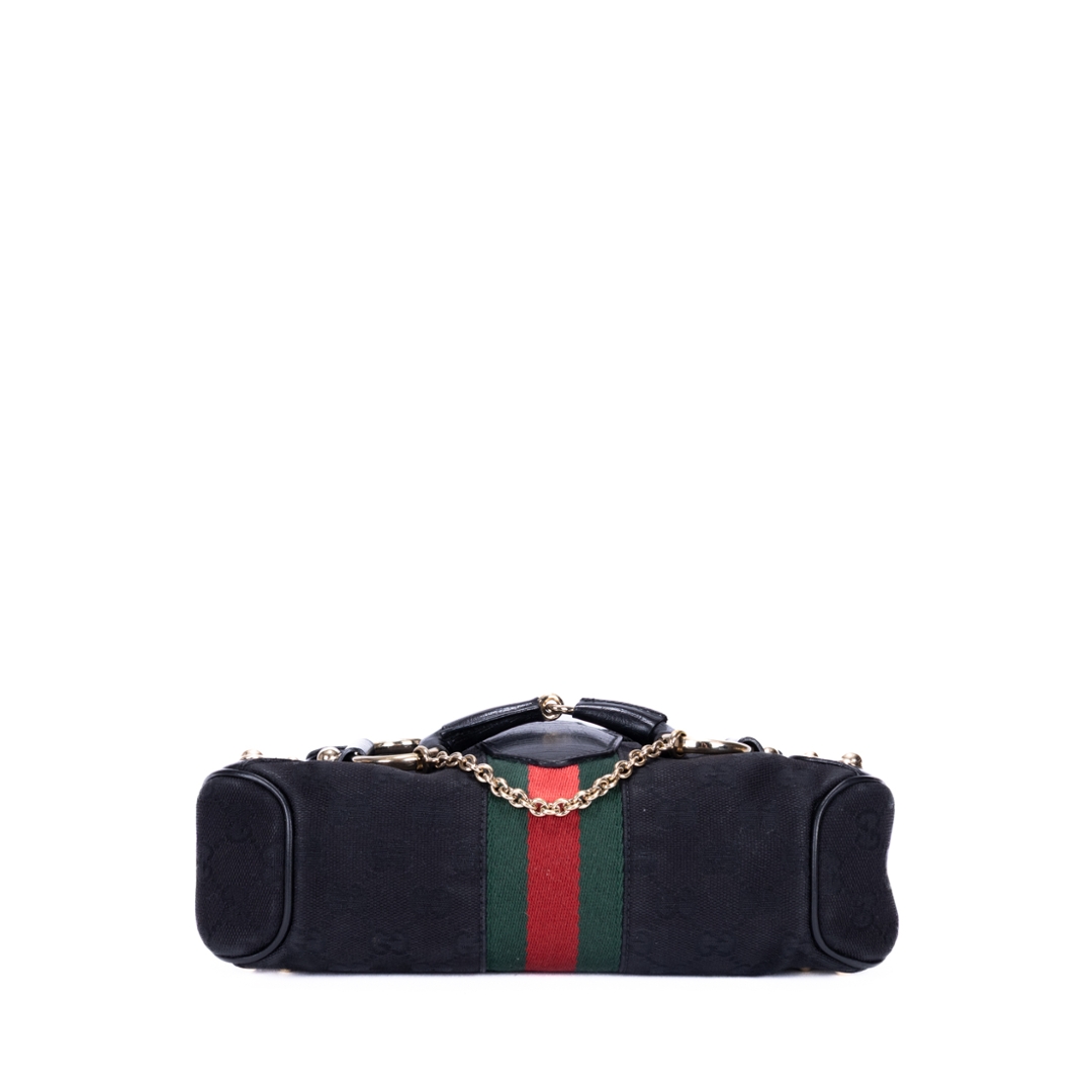 A sought-after vintage piece, complete with a certificate of authenticity, this Horsebit Chain Web bag represents enduring Gucci craftsmanship and design. Its iconic detailing and strong resale appeal make it a standout addition for collectors and fashion-focused buyers alike.