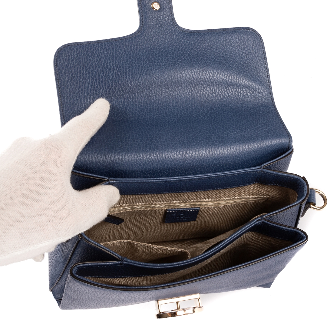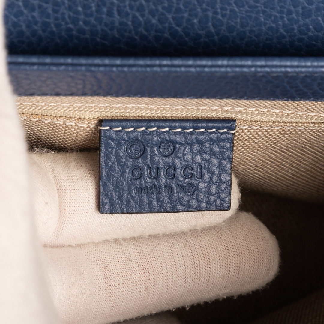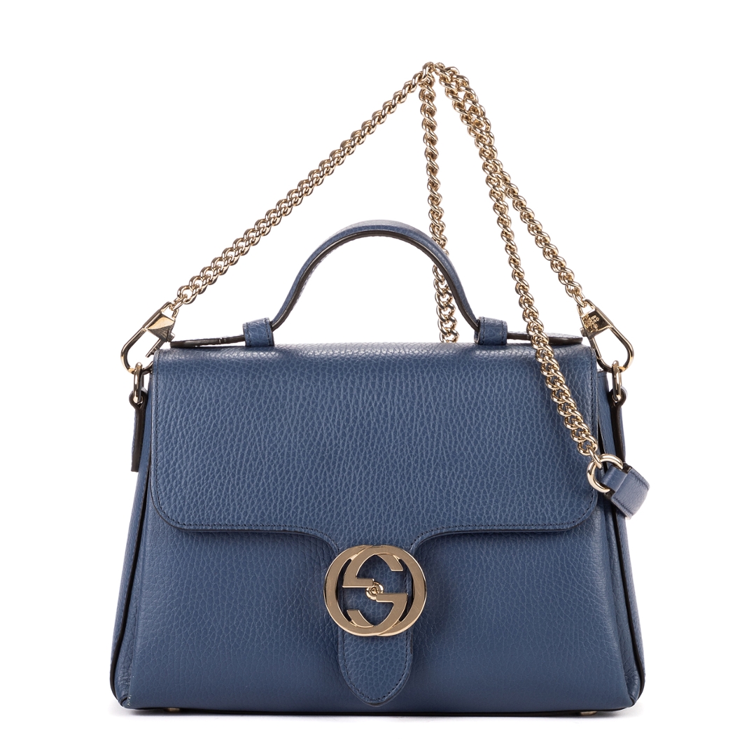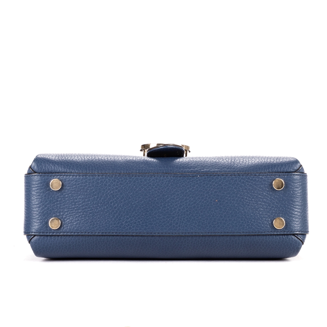 A vintage Gucci blue calf leather Interlocking G Top Handle bag with a certificate of authenticity, Approximately 19cm height, 26cm width.