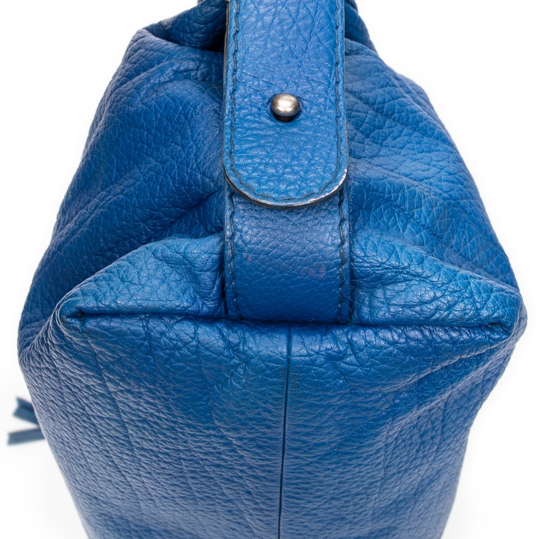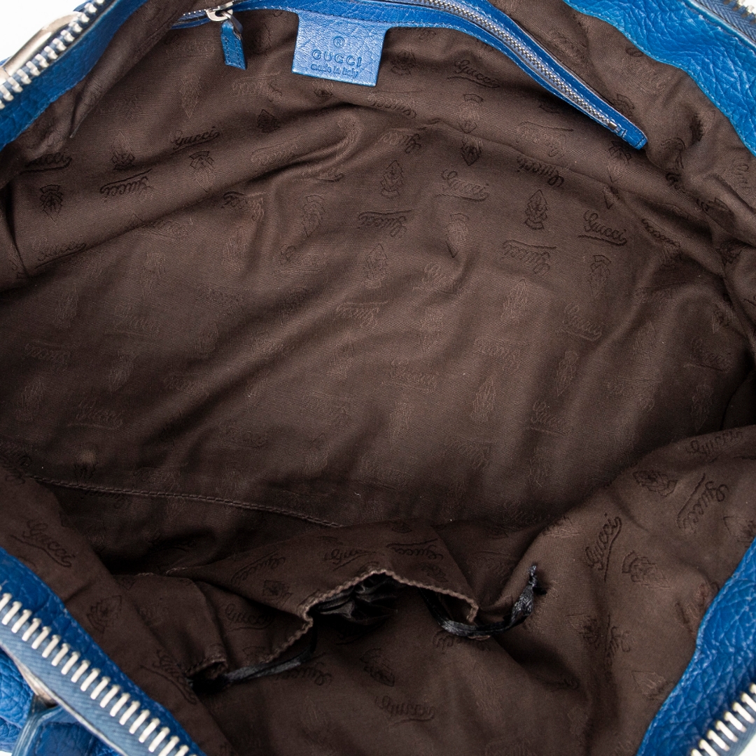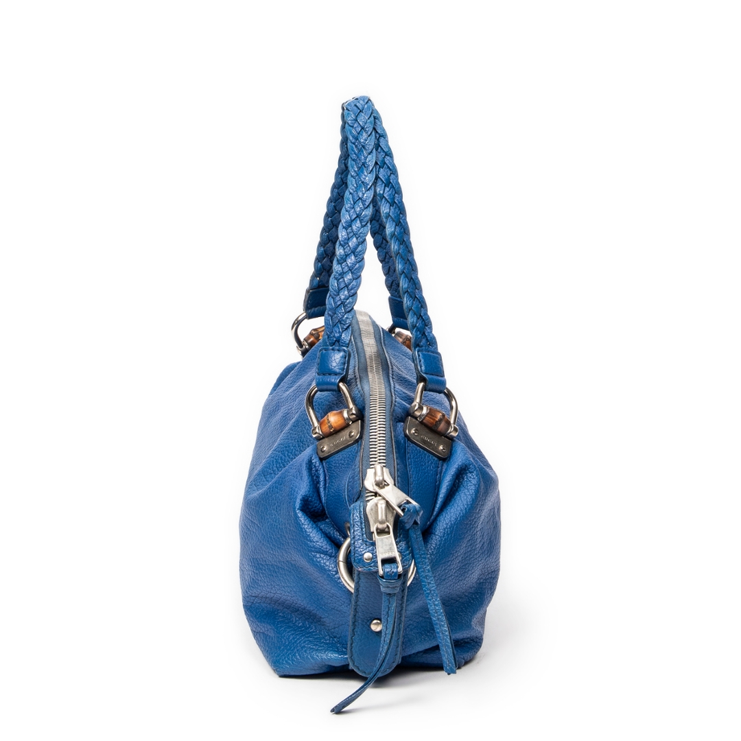 A vintage Gucci royal blue calf leather Large Bamboo Bar Boston bag with a certificate of authenticity. Approximately 27cm height, 40cm width.