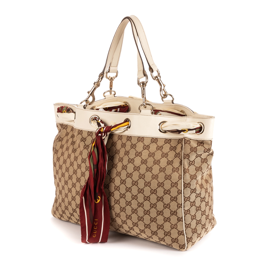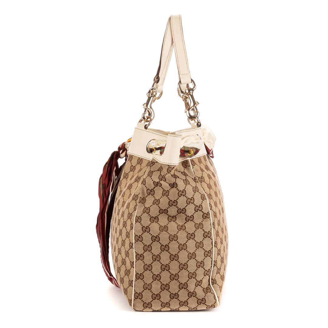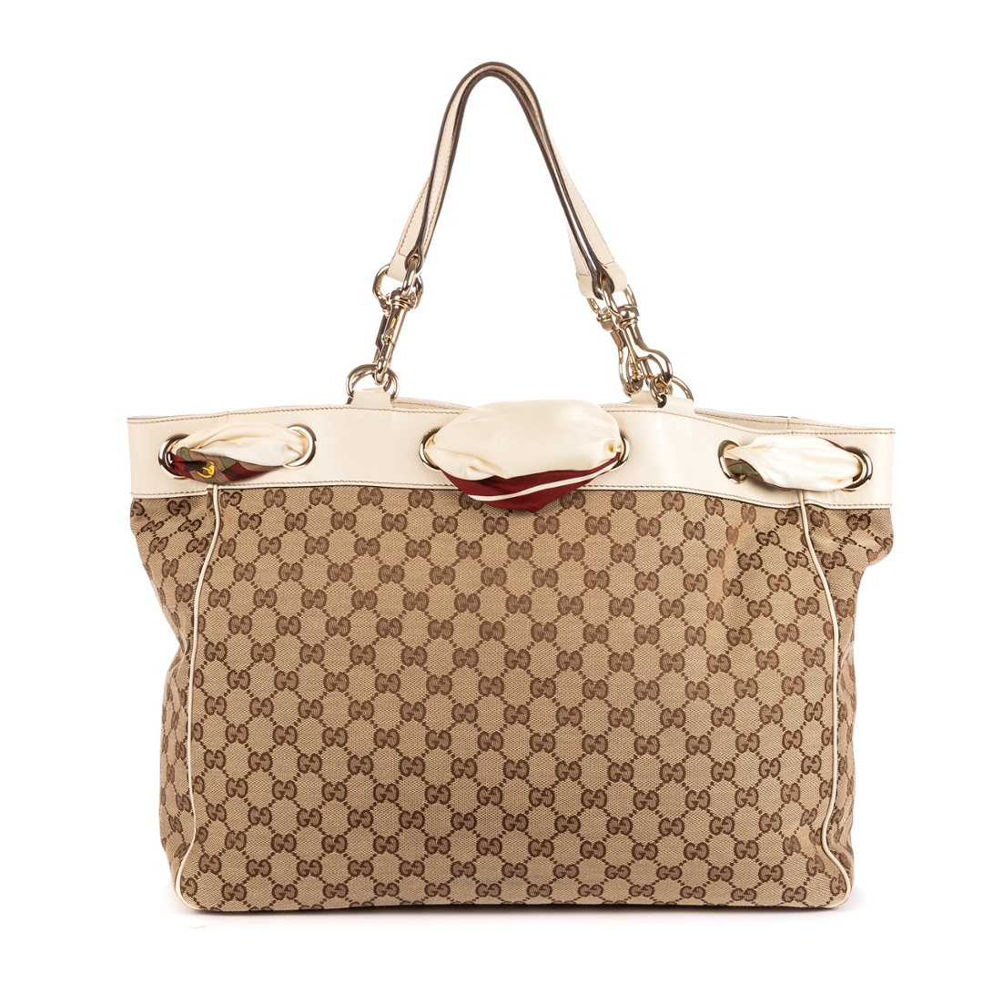 A vintage Gucci beige/ivory canvas Large Positano Tote bag with a certificate of authenticity, Approximately 32cm height, 39cm width.