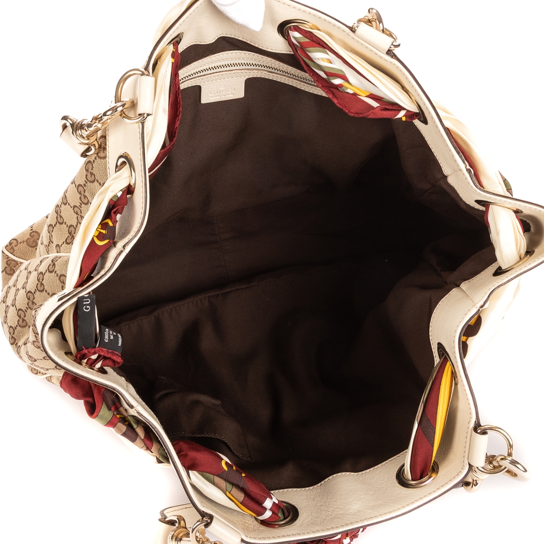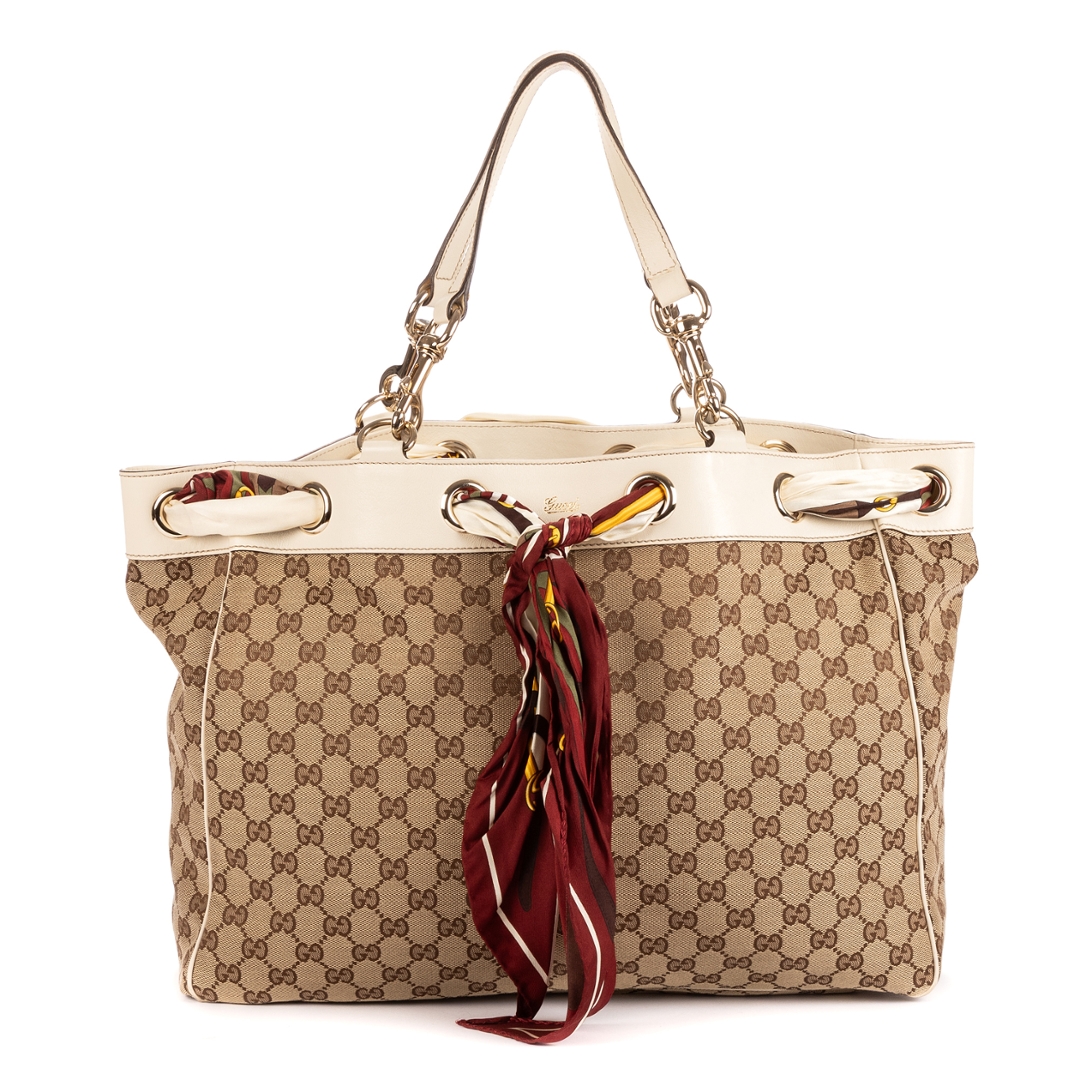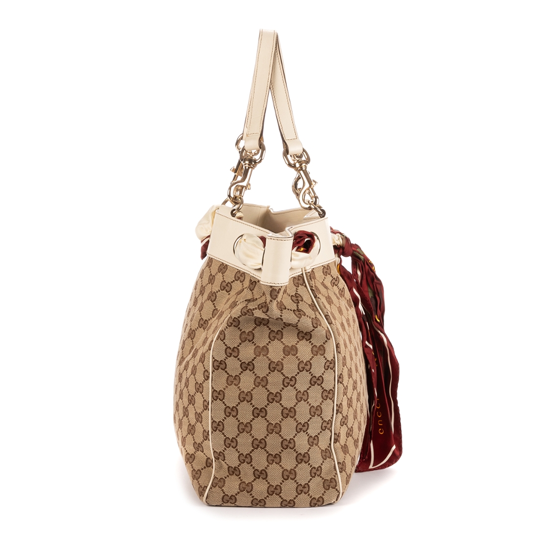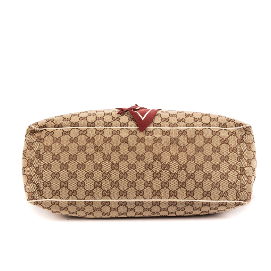 A vintage Gucci beige/ivory canvas Large Positano Tote bag with a certificate of authenticity, Approximately 32cm height, 39cm width.