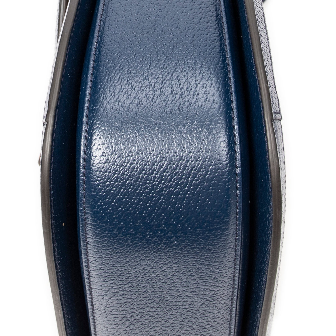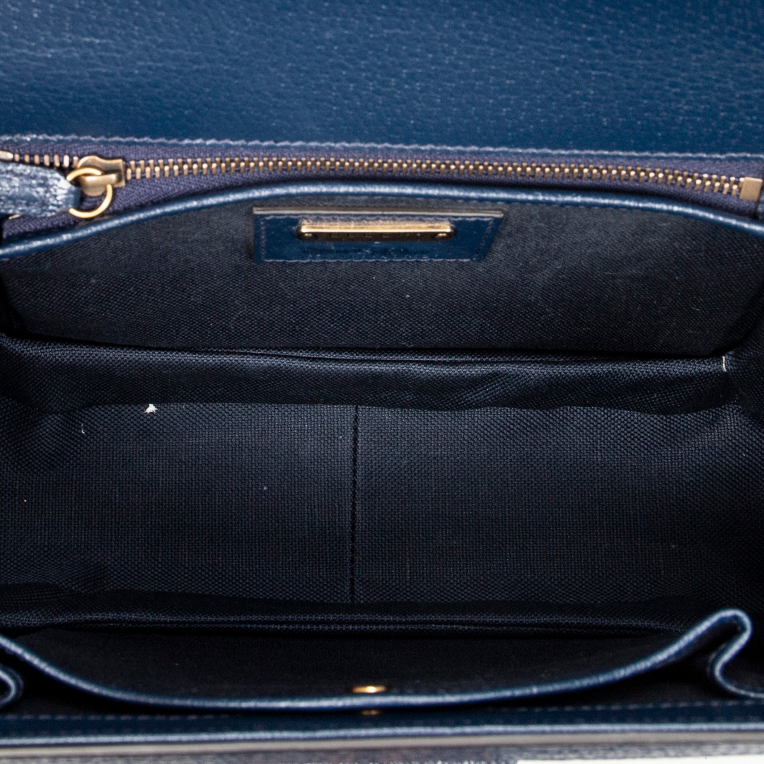 A vintage Gucci navy/yellow coated canvas Medium Centennial Bamboo Top Handle bag with a certificate of authenticity, Approximately 17cm height, 27cm width.