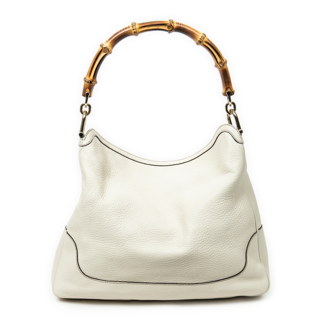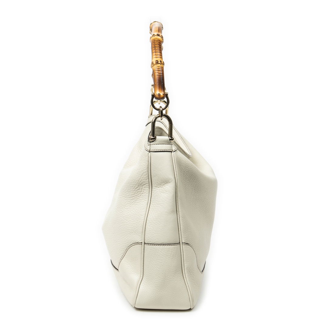 A vintage Gucci ivory calf leather Medium Diana Bamboo Hobo bag with a certificate of authenticity. Approximately 32cm height, 38cm width.