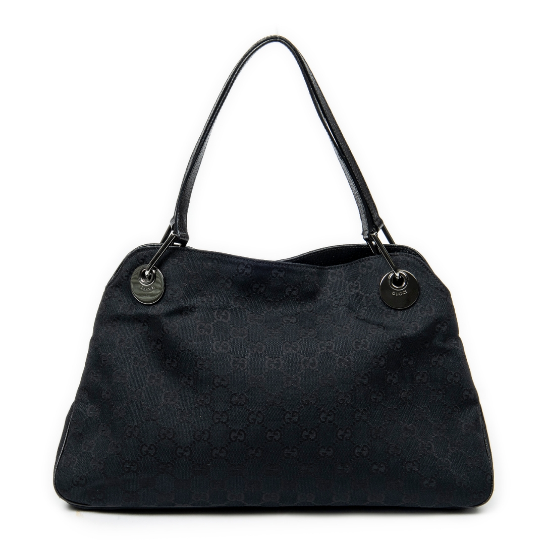 A vintage Gucci black canvas Medium Eclipse Tote bag with a certificate of authenticity. Approximately 24cm height, 39cm width.