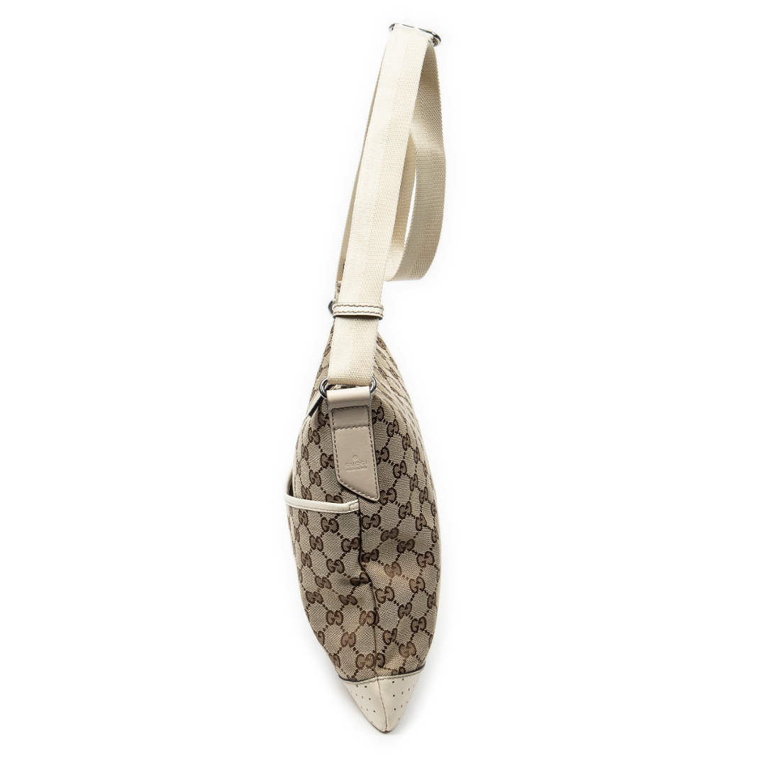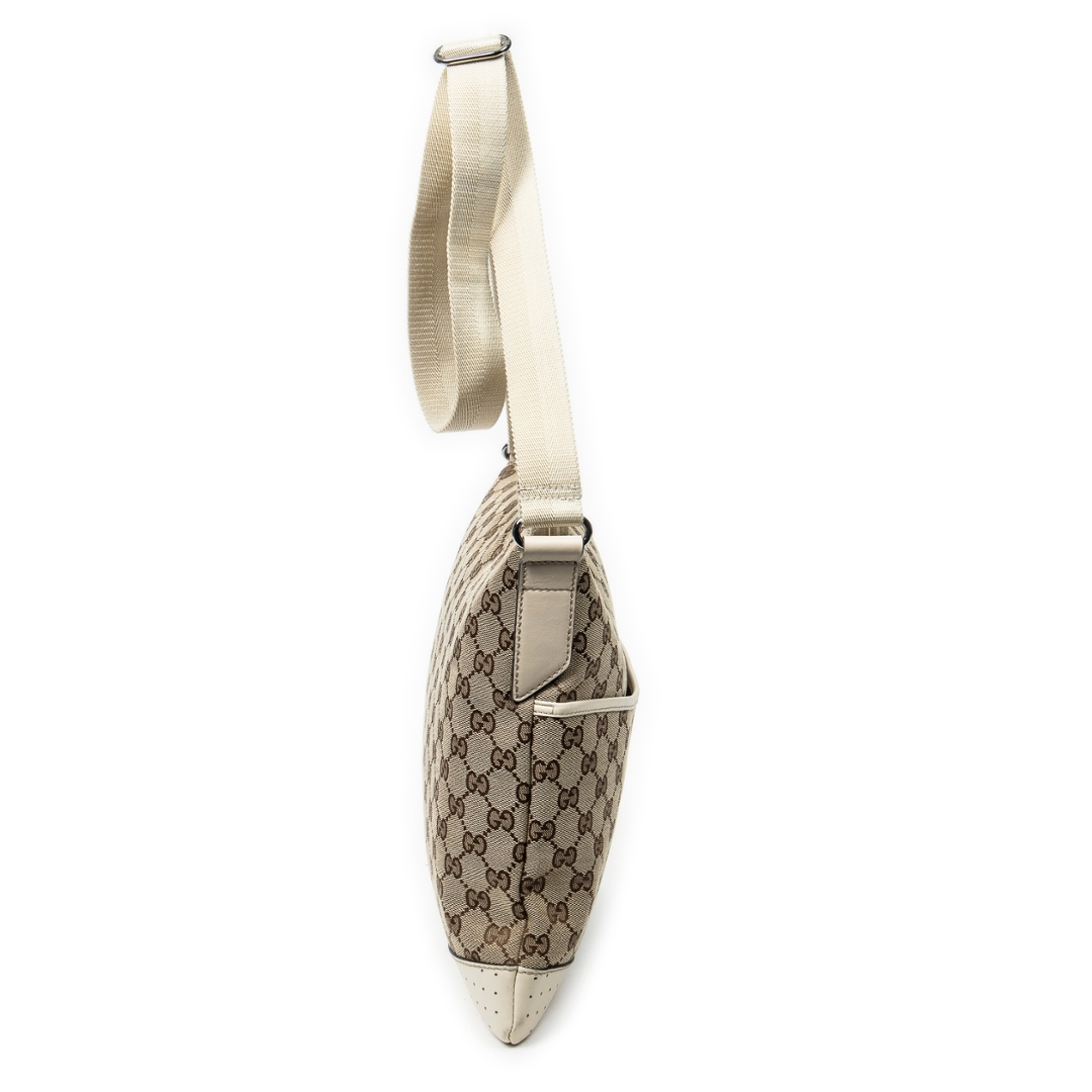 A vintage Gucci beige/ivory canvas Medium Messenger bag with a certificate of authenticity. Approximately 28cm height, 31cm width.