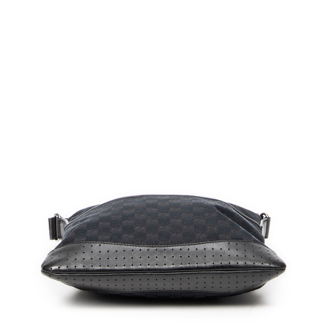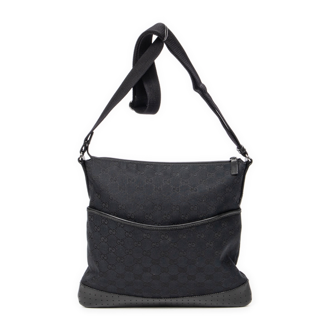 A vintage Gucci black canvas Medium Messenger bag with a certificate of authenticity. Approximately 28cm height, 31cm width.