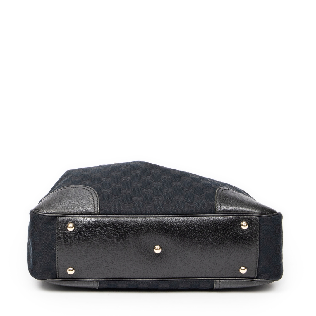 A vintage Gucci black canvas Medium Princy Tote bag with a certificate of authenticity, Approximately 22cm height, 37cm width.