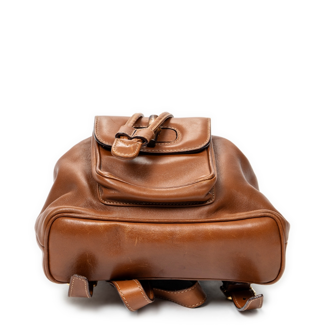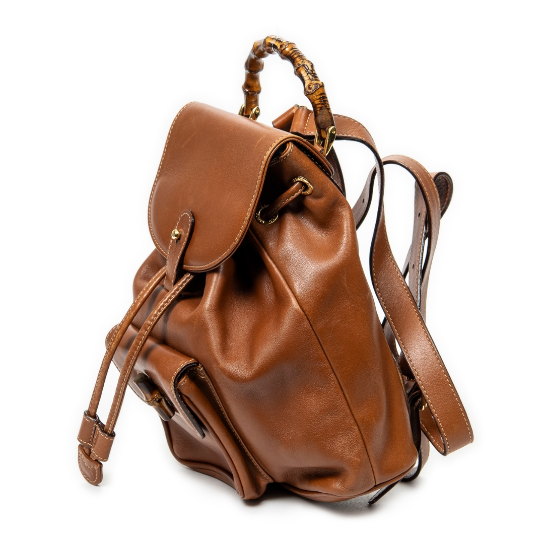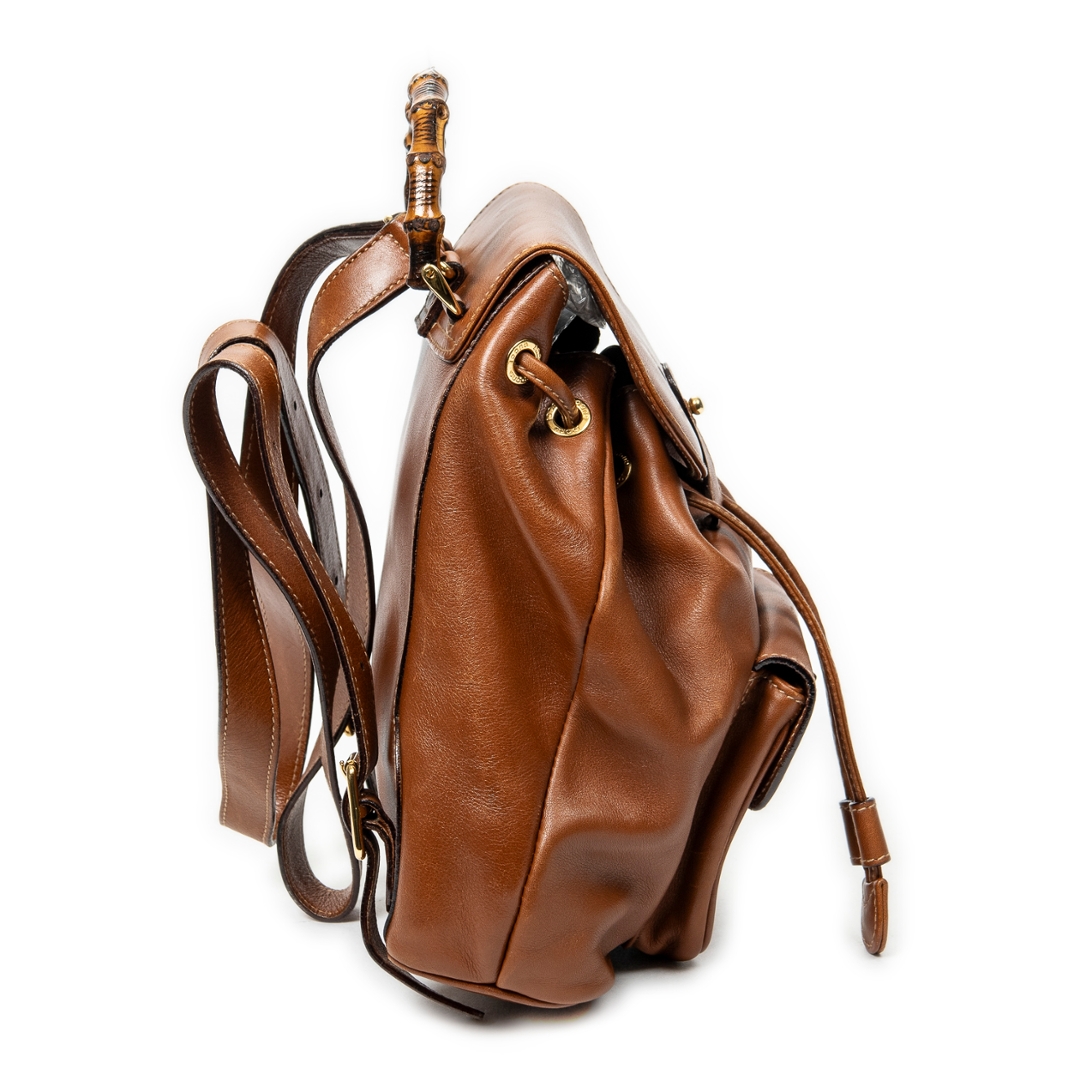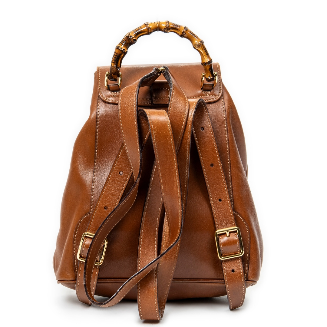 A vintage Gucci brown calf leather Mini Bamboo Backpack with a certificate of authenticity, Approximately 24cm height, 21cm width.