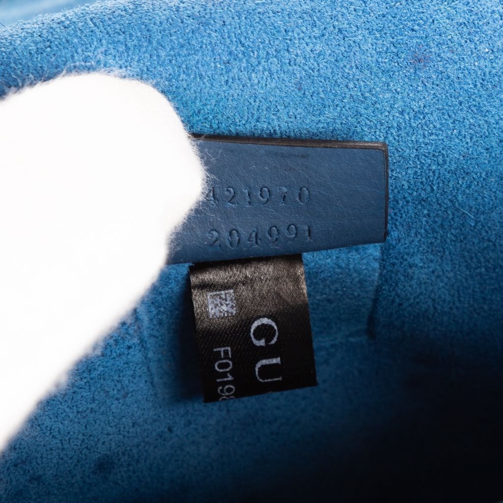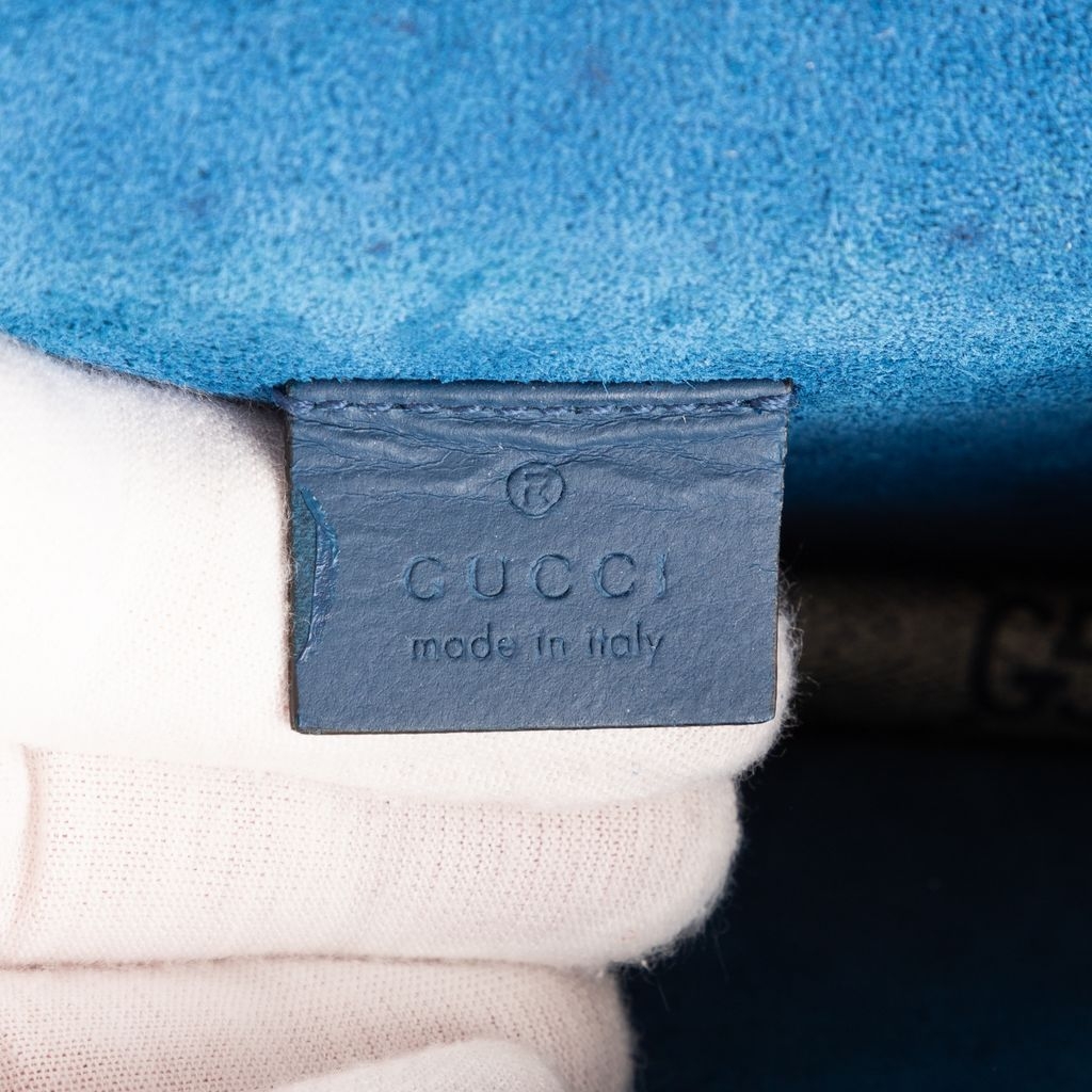 Graded A, the bag is in very good vintage condition with light signs of use. Blue suede side panels and a sliding chain strap add both contrast and versatility, allowing it to be worn on the shoulder or crossbody. Supplied with a certificate of authenticity, this bag is ideal for those who appreciate classic Gucci charm with a fresh, floral twist—making it a standout in any accessory collection.