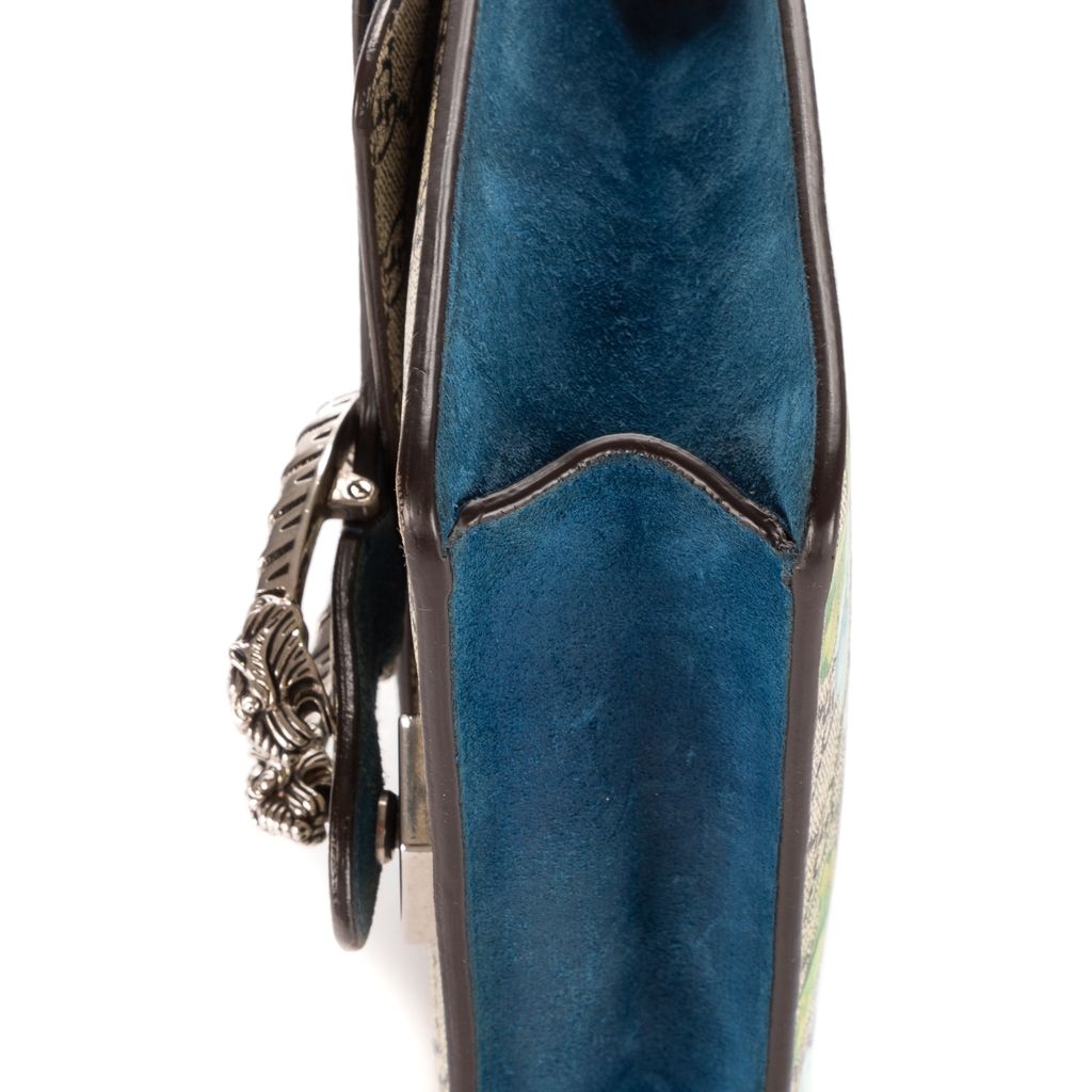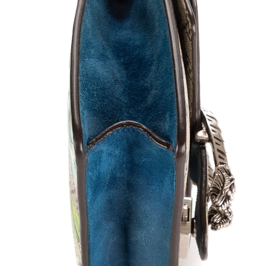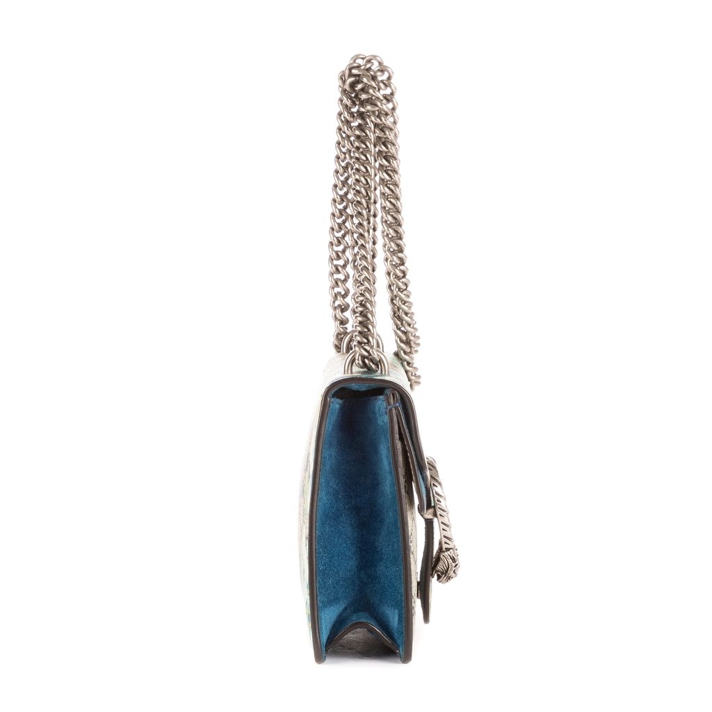 Graded A, the bag remains in very good vintage condition with only light signs of use. The blue suede side panels and structured silhouette add depth and luxury, while the sliding chain strap allows for both shoulder and crossbody wear. Complete with a certificate of authenticity, this floral Dionysus is an elegant blend of timeless Gucci design and feminine charm—ideal for collectors and fashion lovers alike.