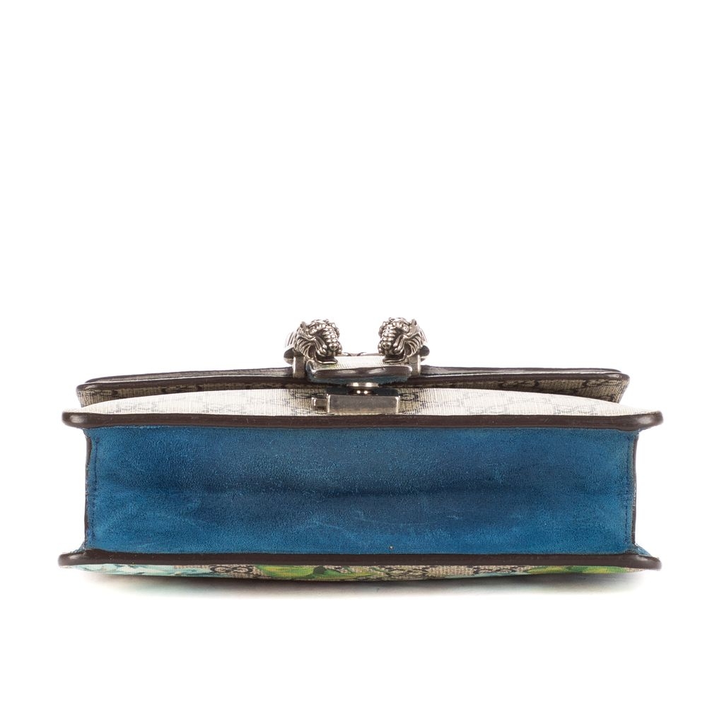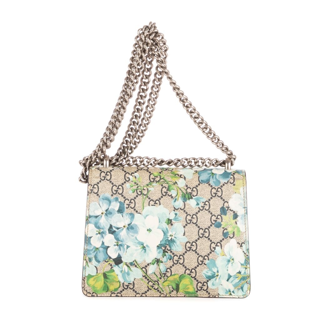 A vintage Gucci beige/blue coated canvas Mini Blooms Dionysus bag with a certificate of authenticity, Approximately 16cm height, 20cm width.