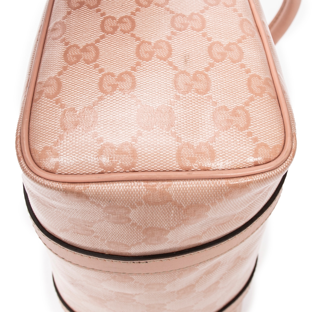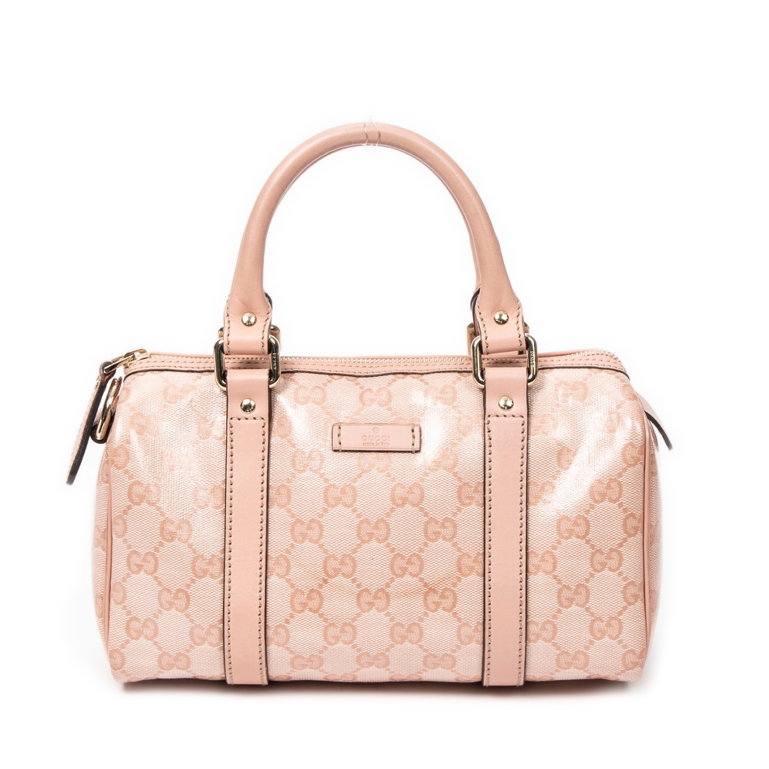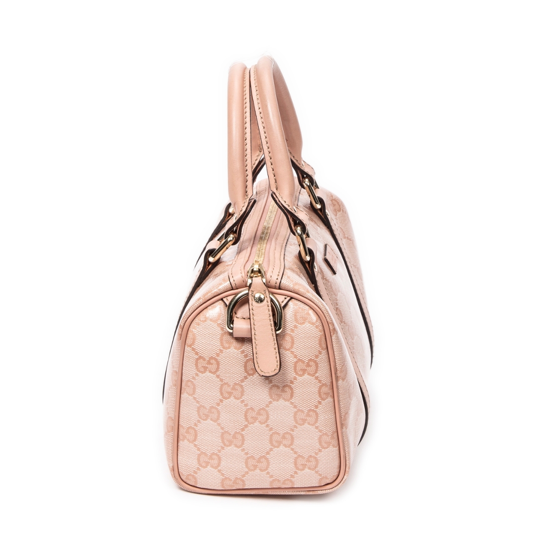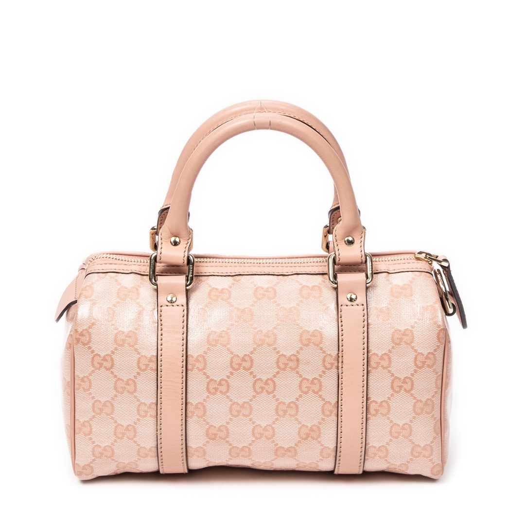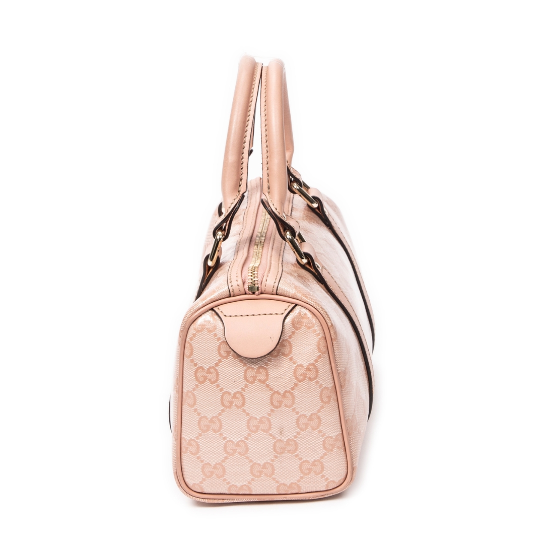 A vintage Gucci pink coated canvas Mini Joy Boston bag with a certificate of authenticity, Approximately 13cm height, 24cm width.