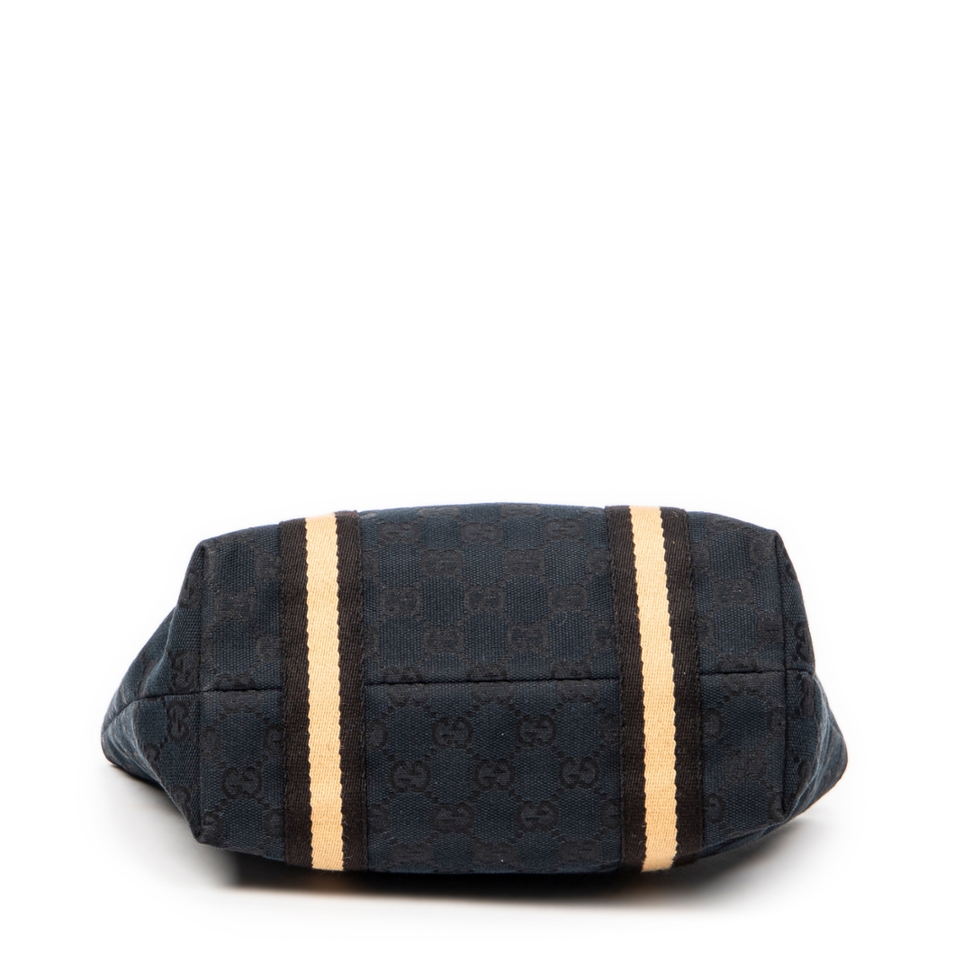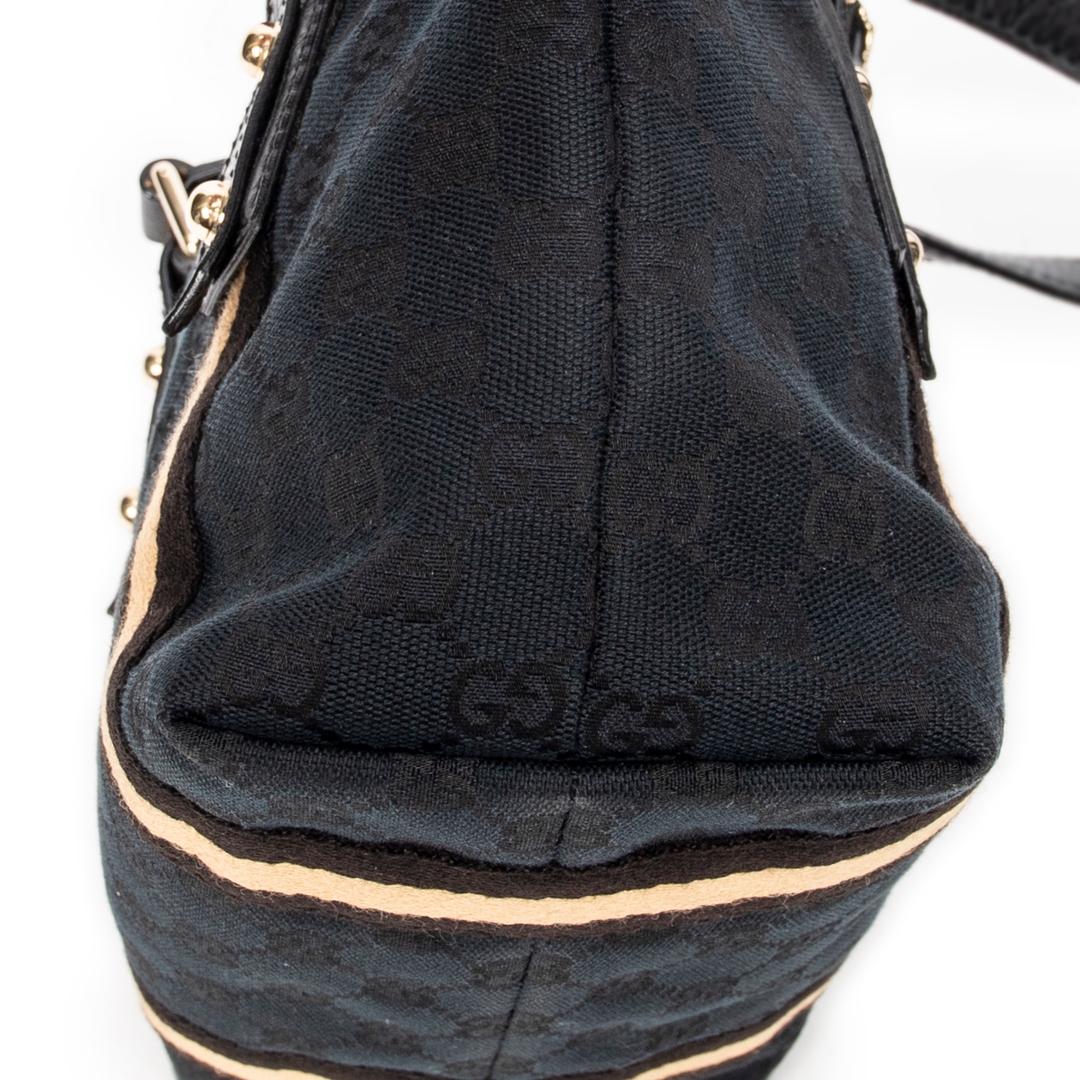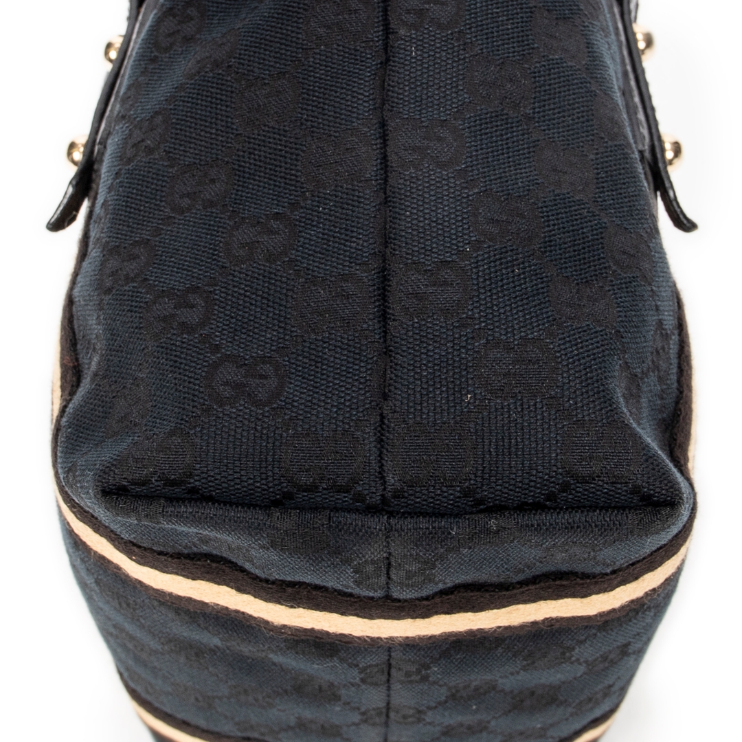 A vintage Gucci black canvas Mini Web Jolicoeur Tote bag with a certificate of authenticity, Approximately 17cm height, 22cm width.