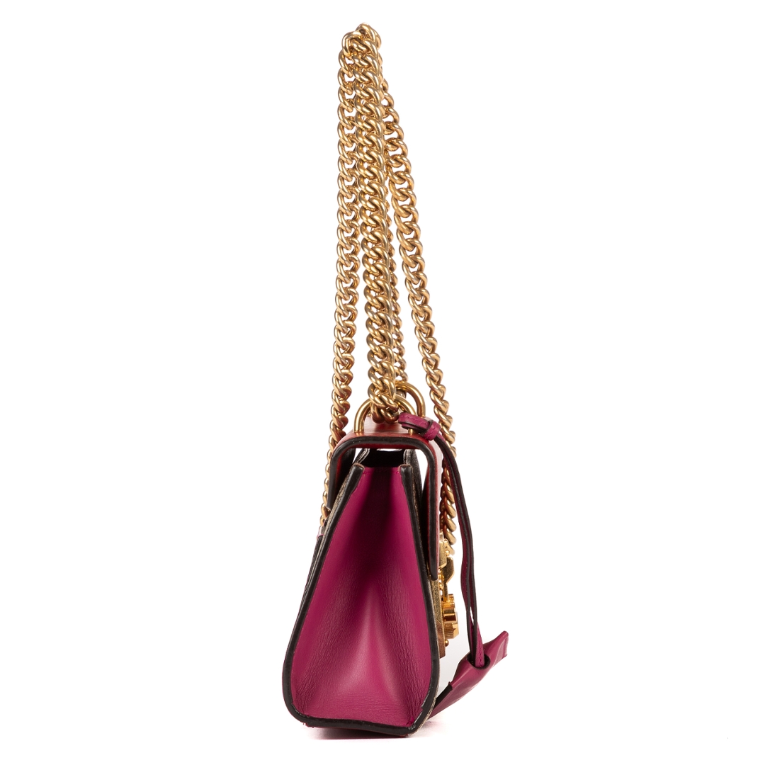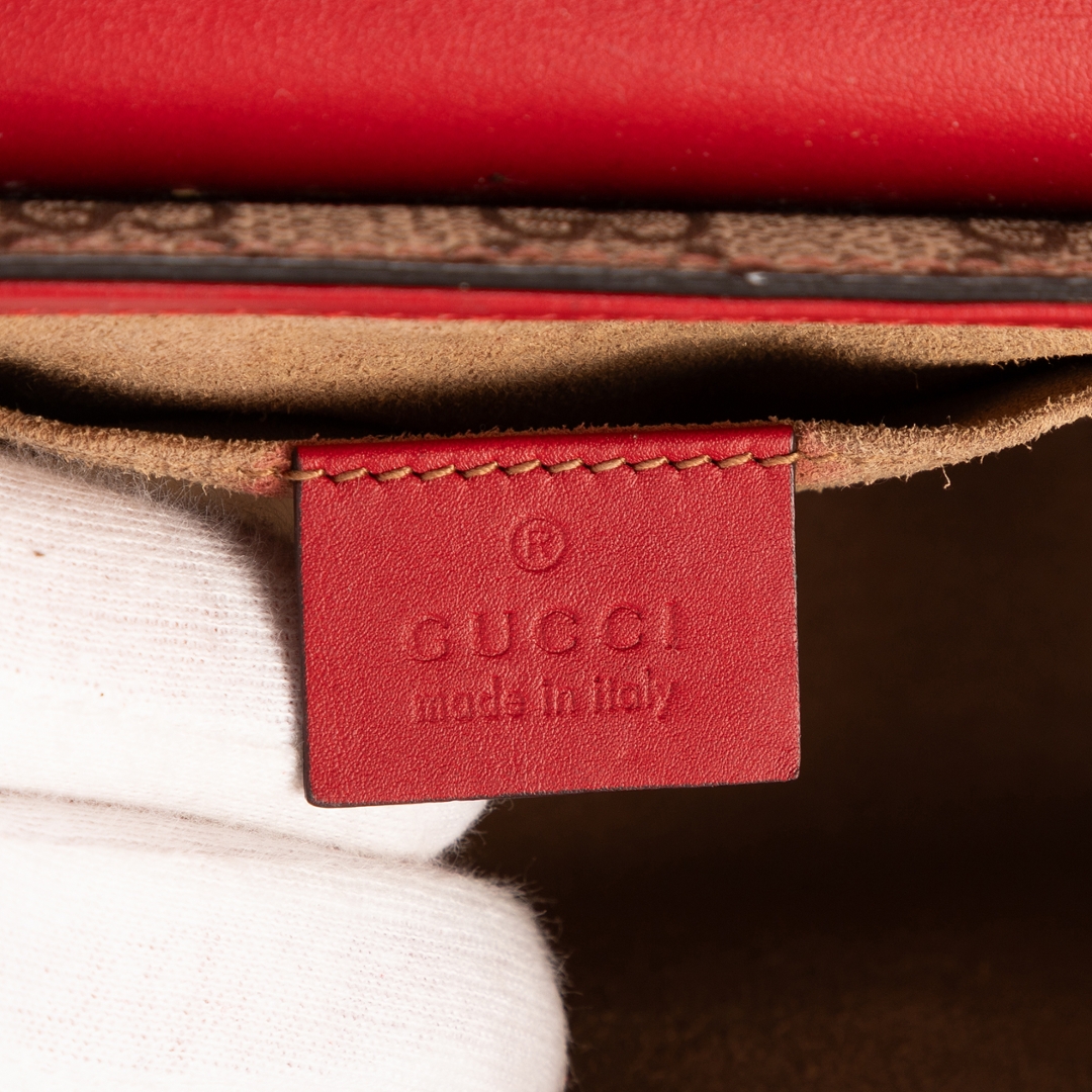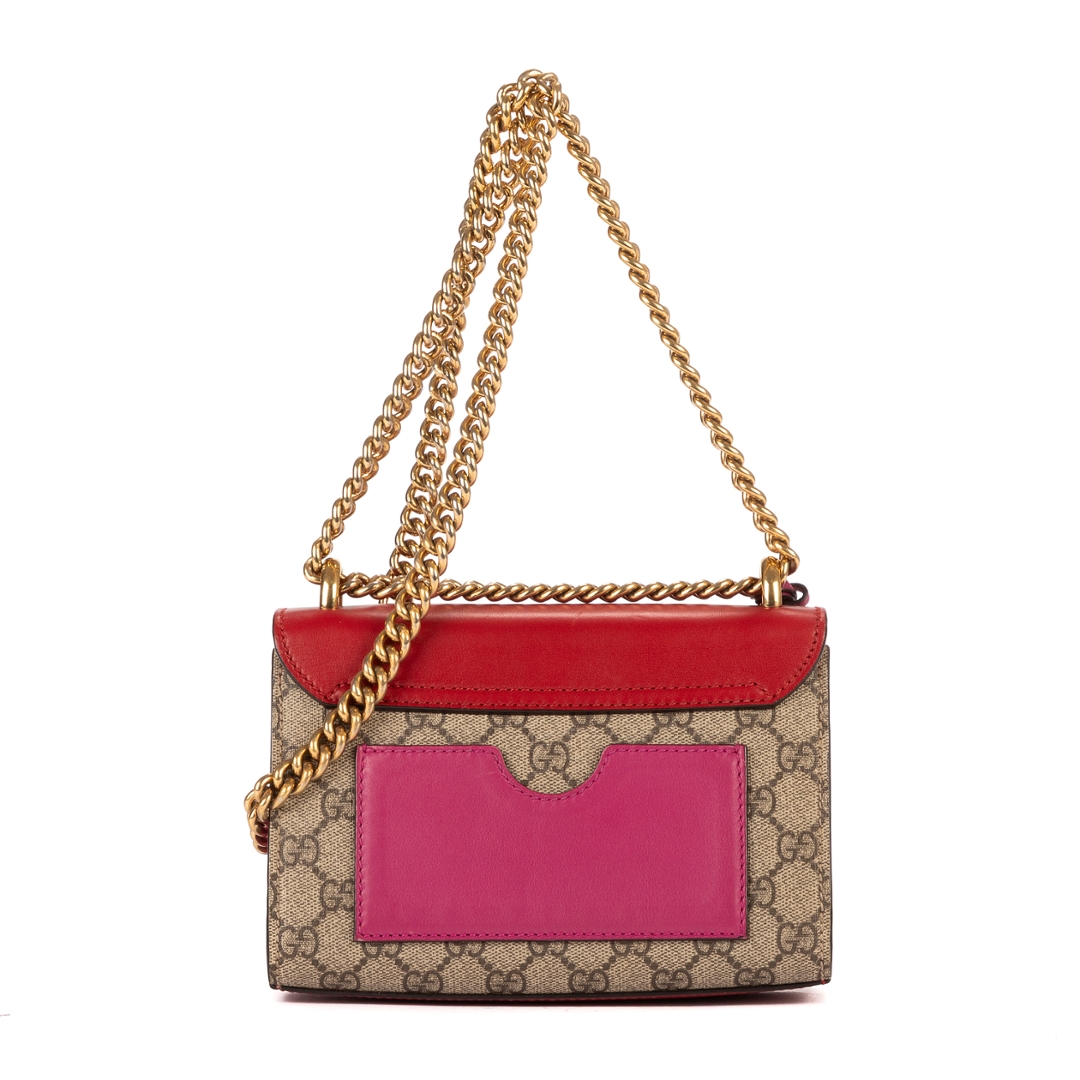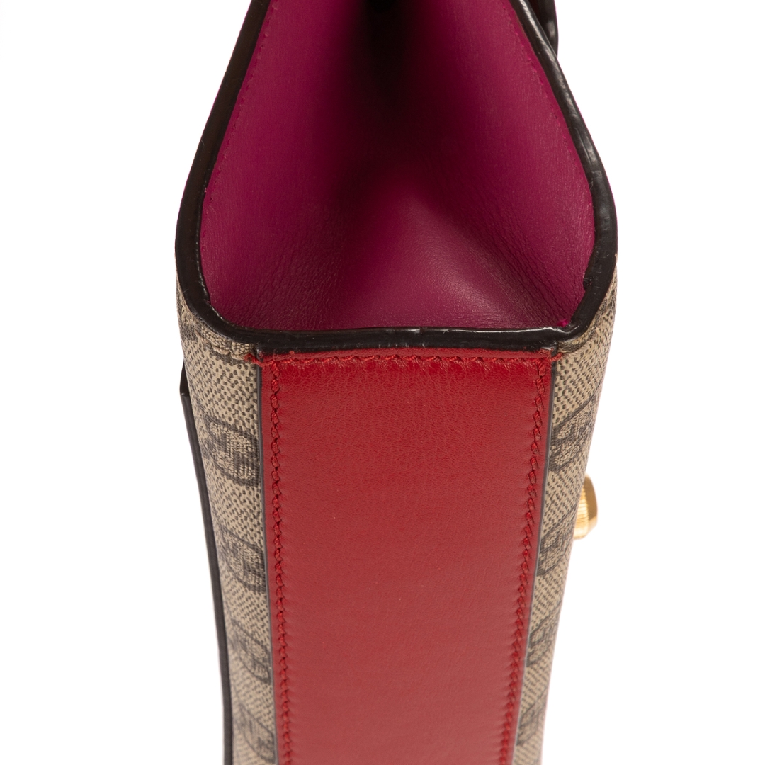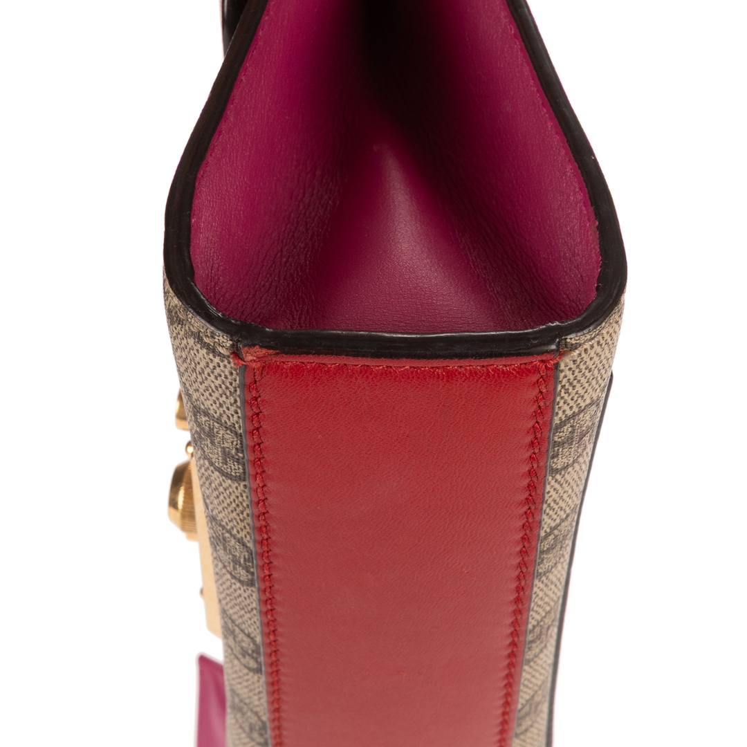 A vintage Gucci beige/red calf leather Padlock bag with a certificate of authenticity, Approximately 12cm height, 19cm width.