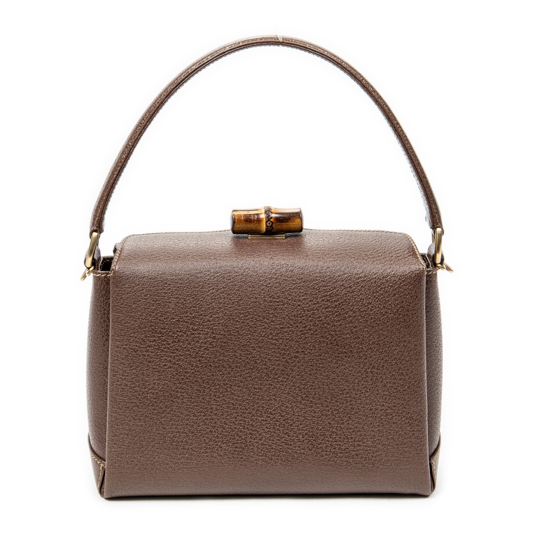 A vintage Gucci brown calf leather Small Bamboo Top Handle bag with a certificate of authenticity, Approximately 15cm height, 21cm width.