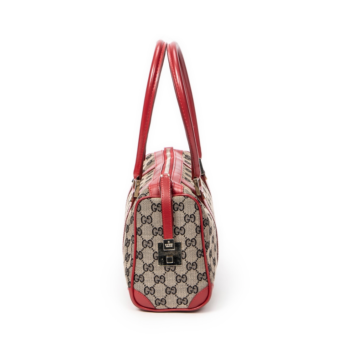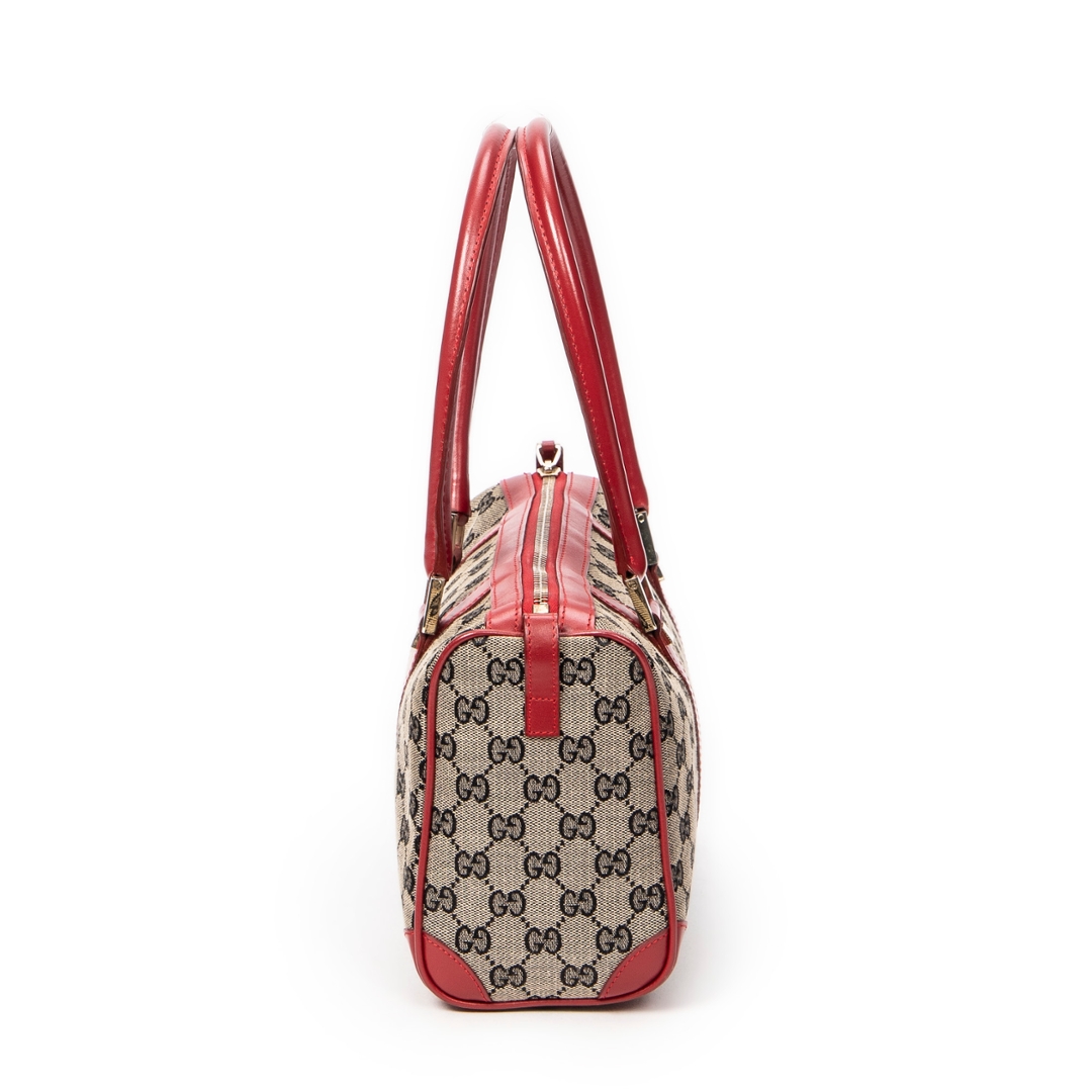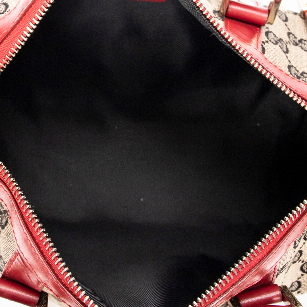 A vintage Gucci red/black canvas Small Boston bag with a certificate of authenticity, Approximately 17cm height, 28cm width.