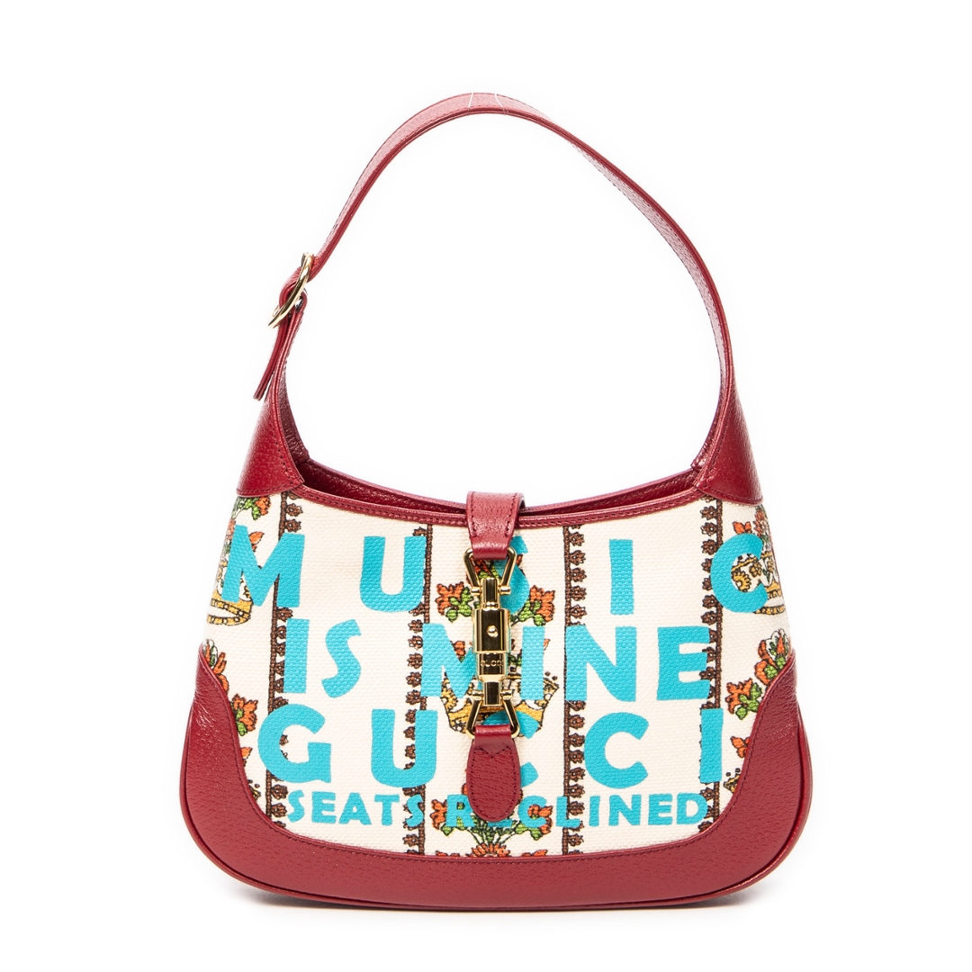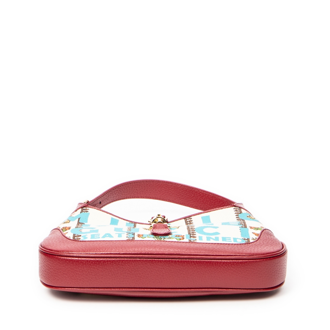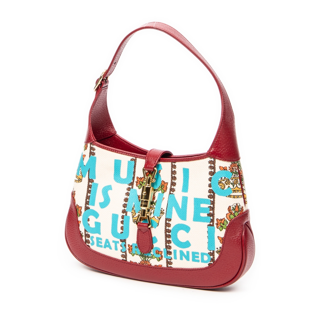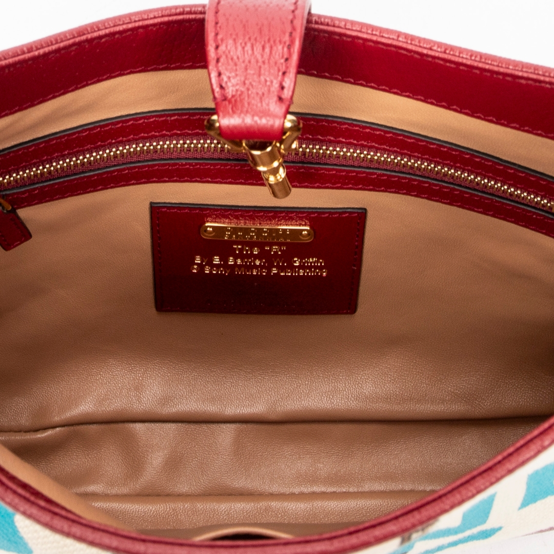 A vintage Gucci beige/red canvas Small Centennial Jackie 1961 Hobo bag with a certificate of authenticity, Approximately 19cm height, 28cm width.