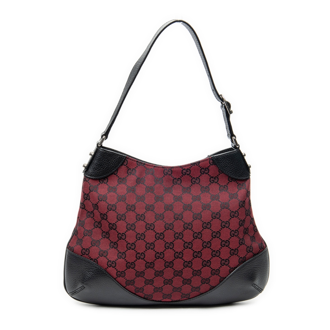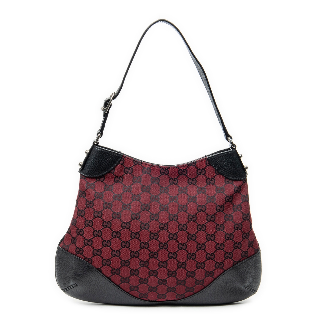 A vintage Gucci red/black canvas Small Hobo bag with a certificate of authenticity, Approximately 12cm height, 22cm width.