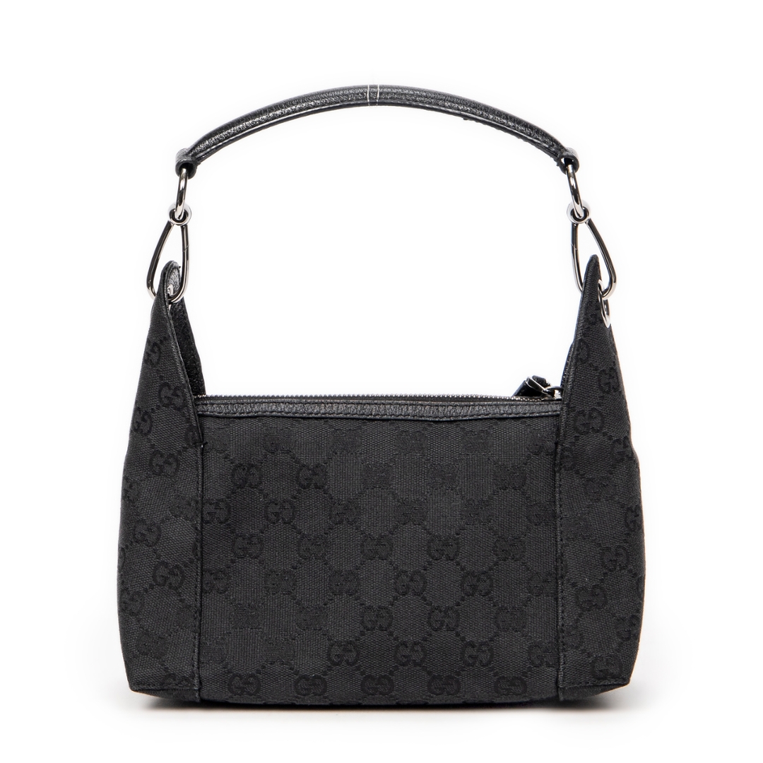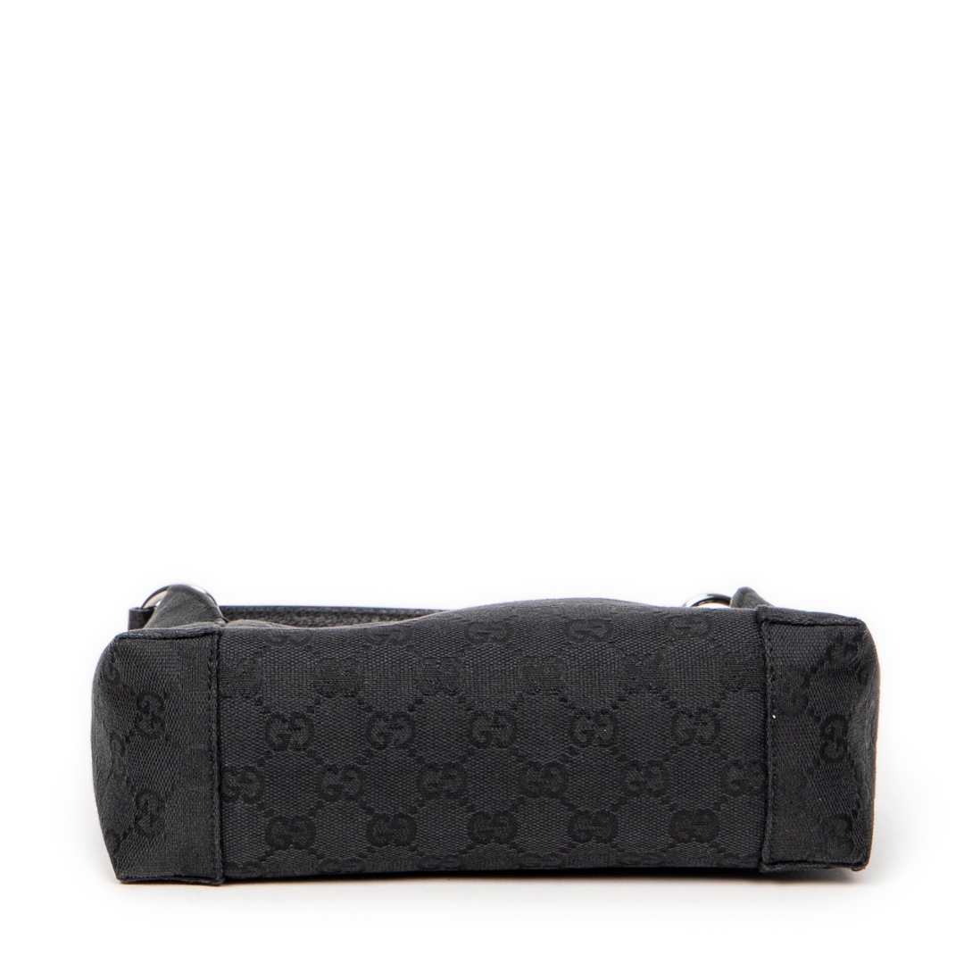 A vintage Gucci black canvas Small Hobo bag with a certificate of authenticity, Approximately 12cm height, 22cm width.