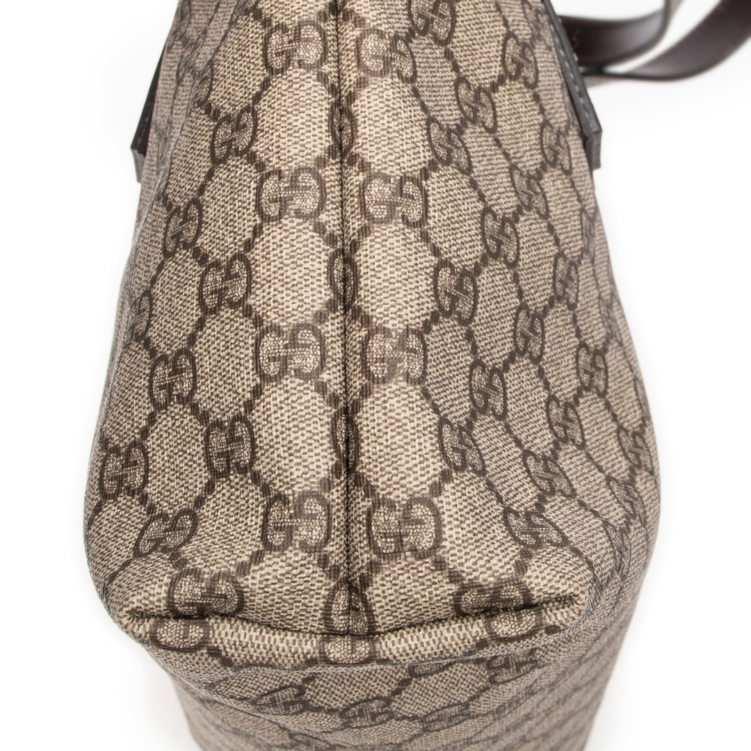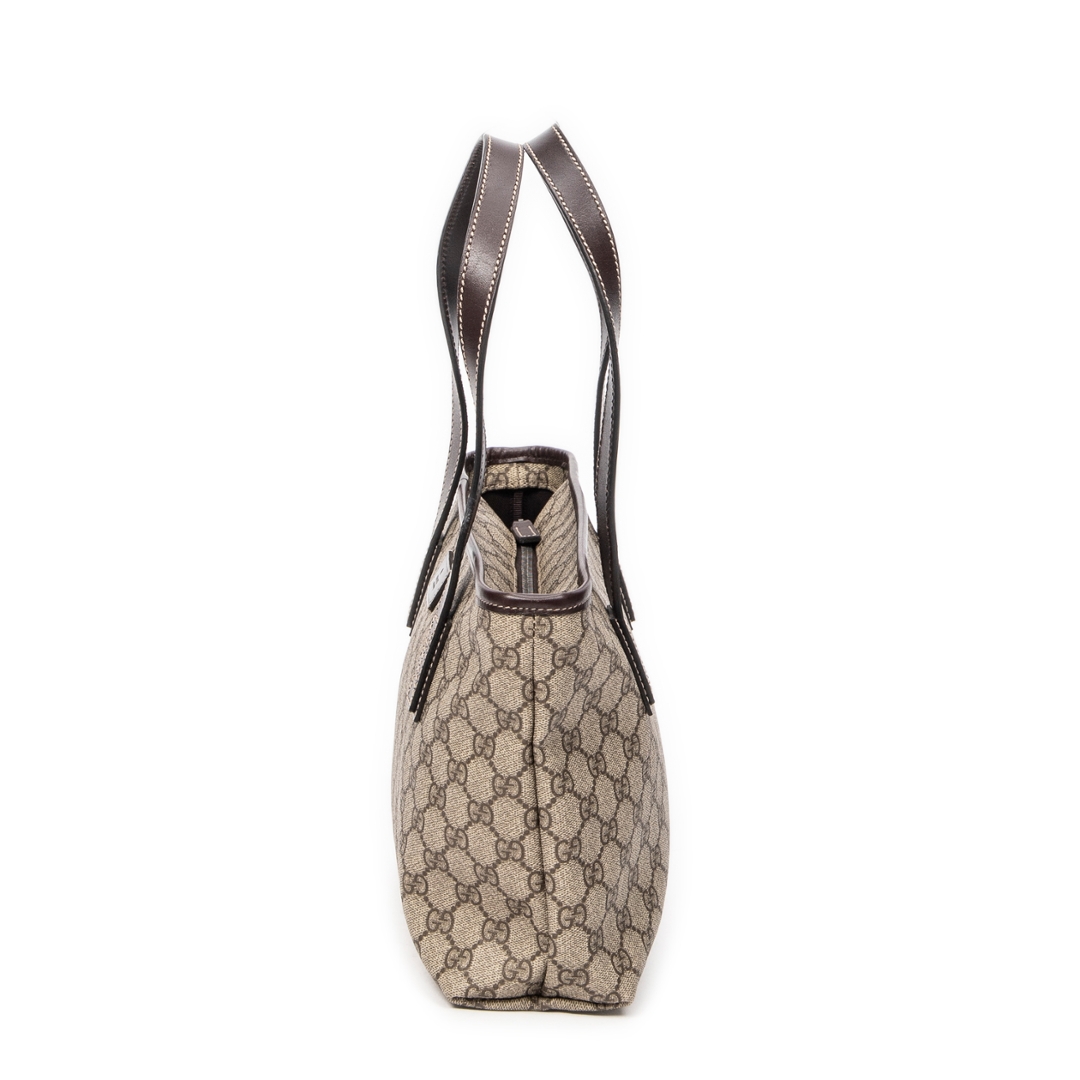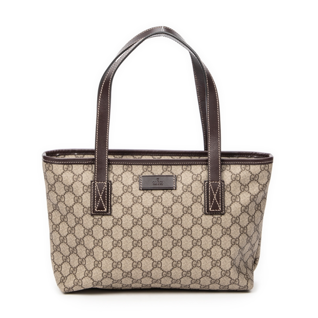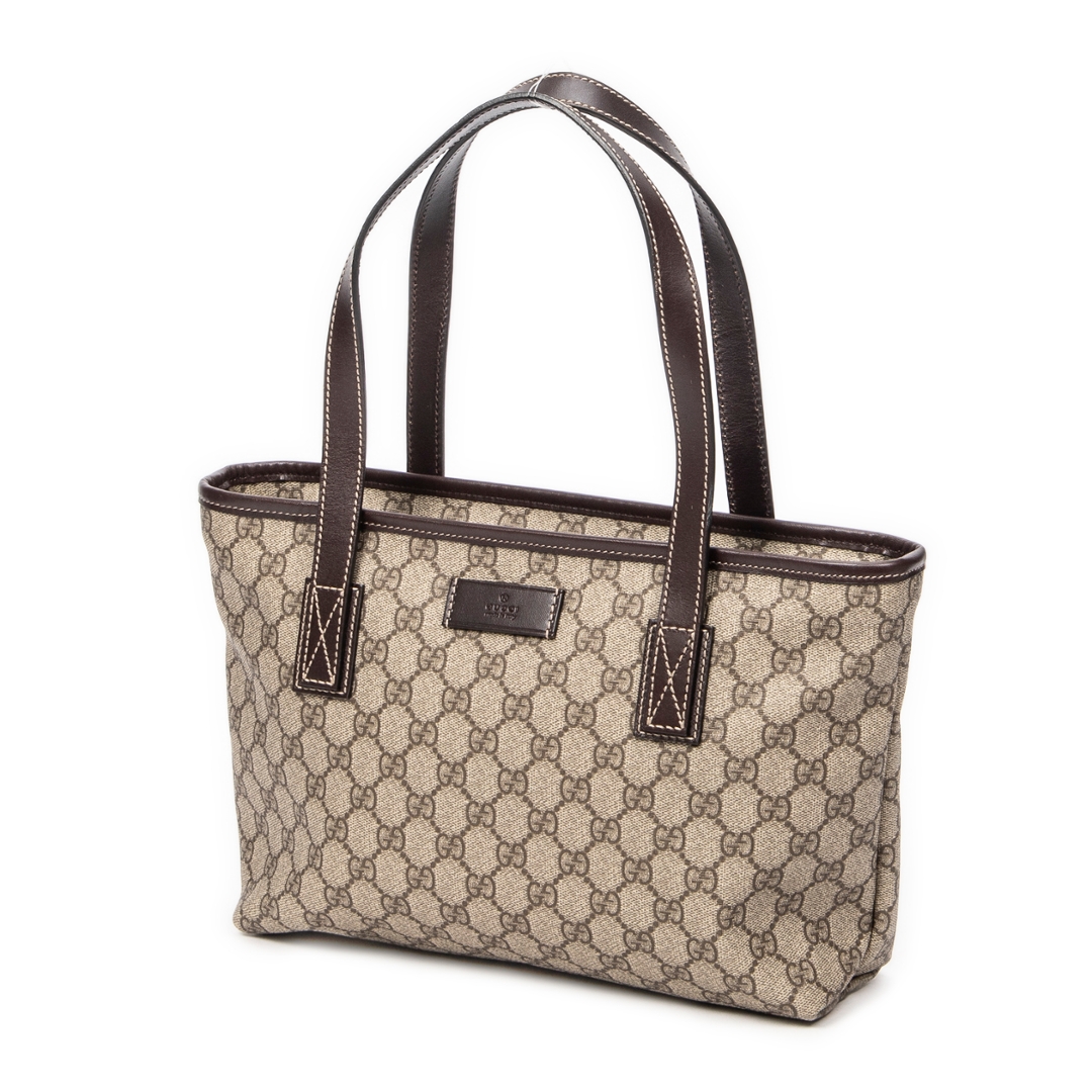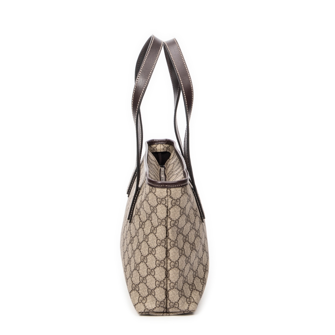 A vintage Gucci beige/dark brown coated canvas Small Joy Tote bag with a certificate of authenticity, Approximately 21cm height, 29cm width.