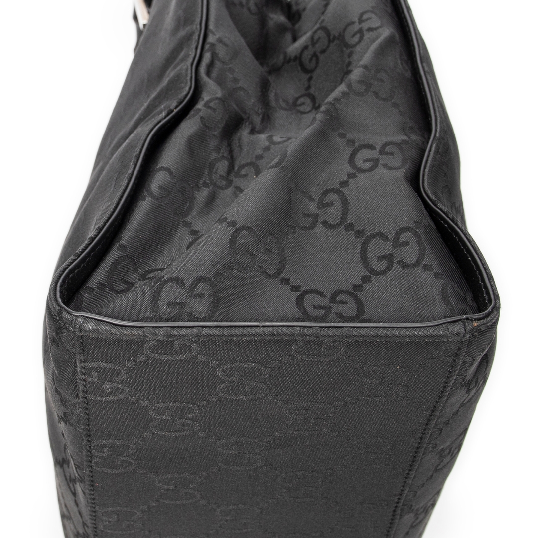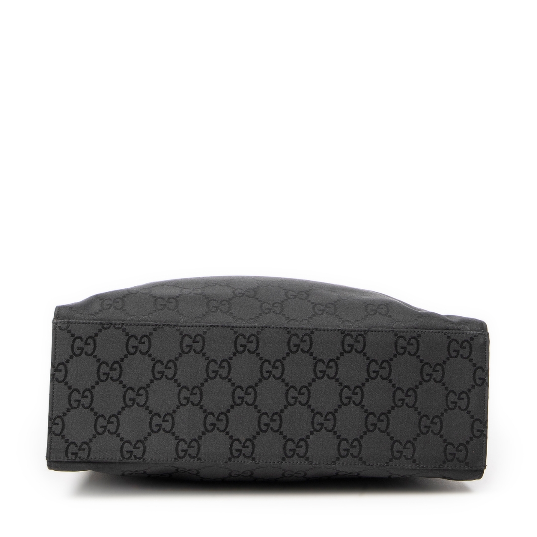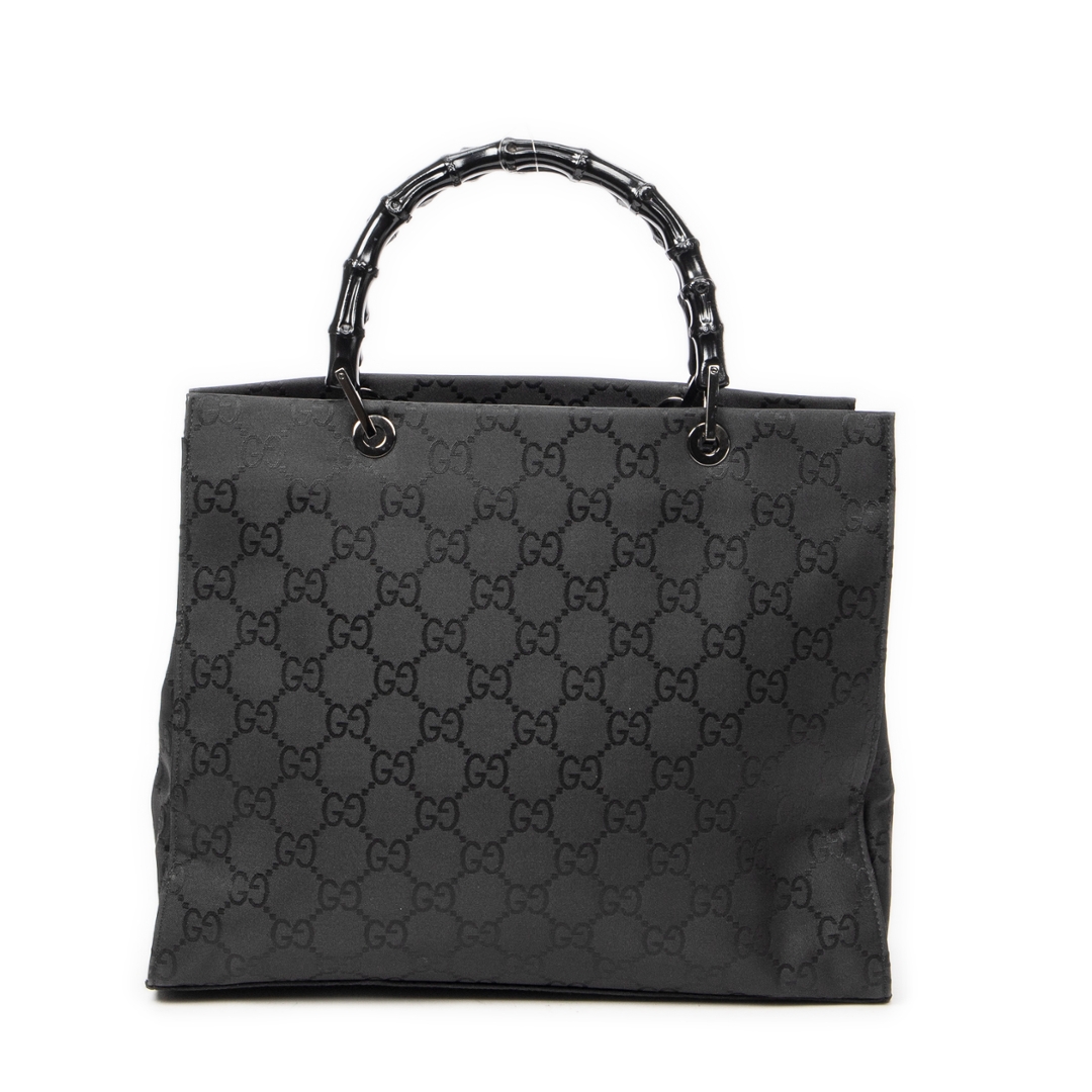 A vintage Gucci black canvas Square Bamboo Tote bag with a certificate of authenticity, Approximately 28cm height, 35cm width.