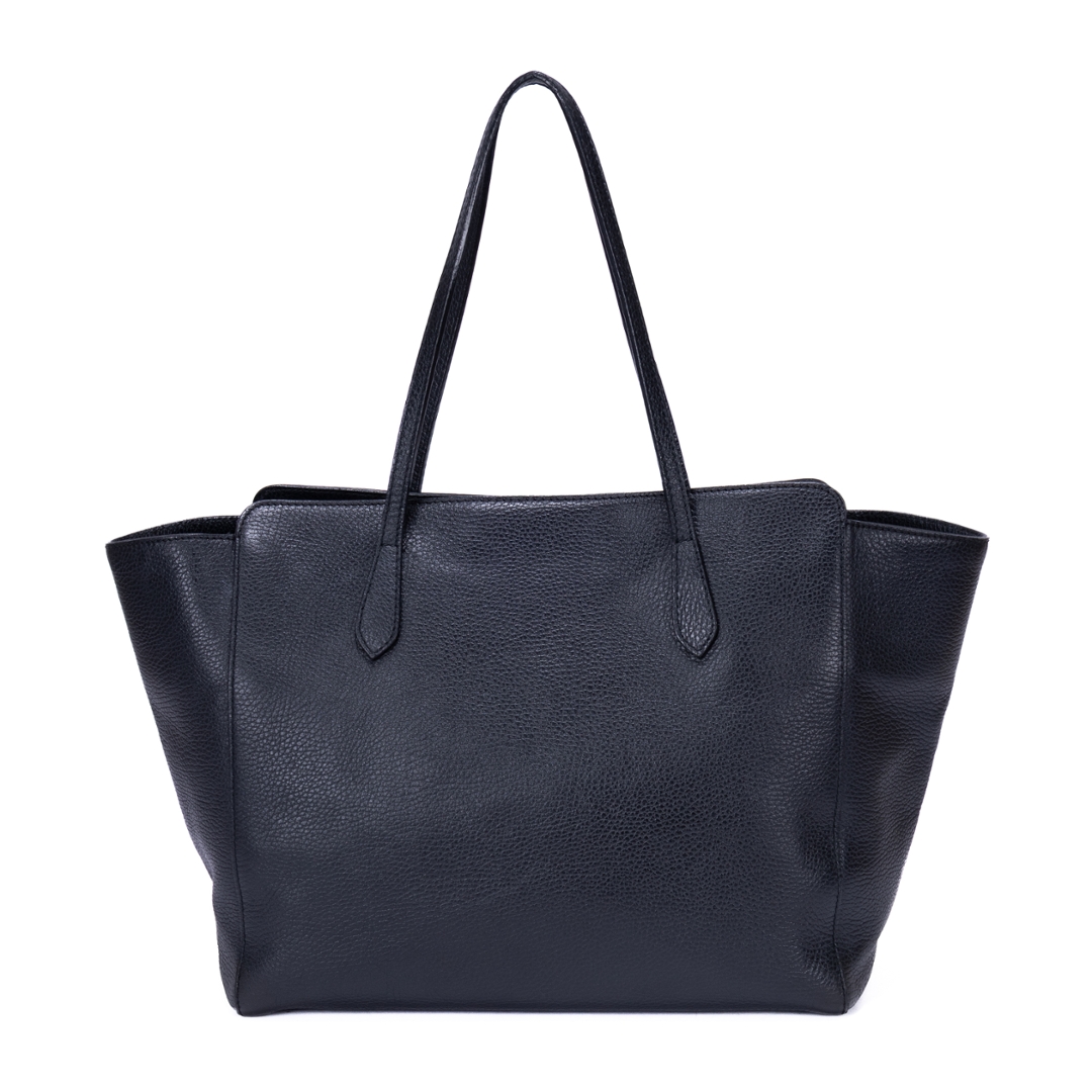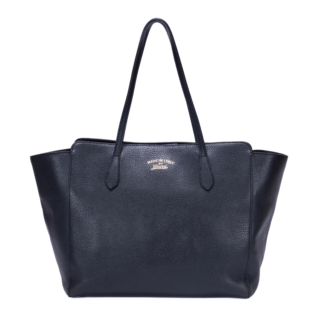 A vintage Gucci black calf leather Swing Shopper bag with a certificate of authenticity. Approximately 28cm height, 34cm width.