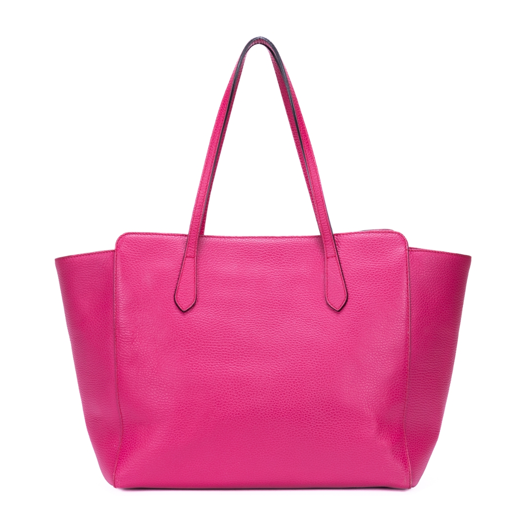 A vintage Gucci fuchsia calf leather Swing Shopper Tote bag with a certificate of authenticity. Approximately 28cm height, 34cm width.