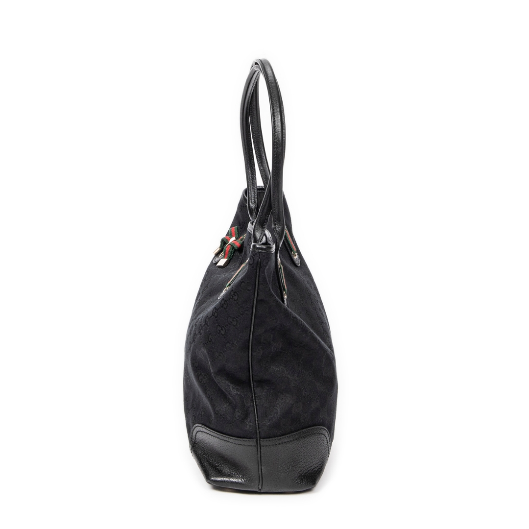 A vintage Gucci black canvas Vertical Princy Tote bag with a certificate of authenticity, Approximately 31cm height, 24cm width.