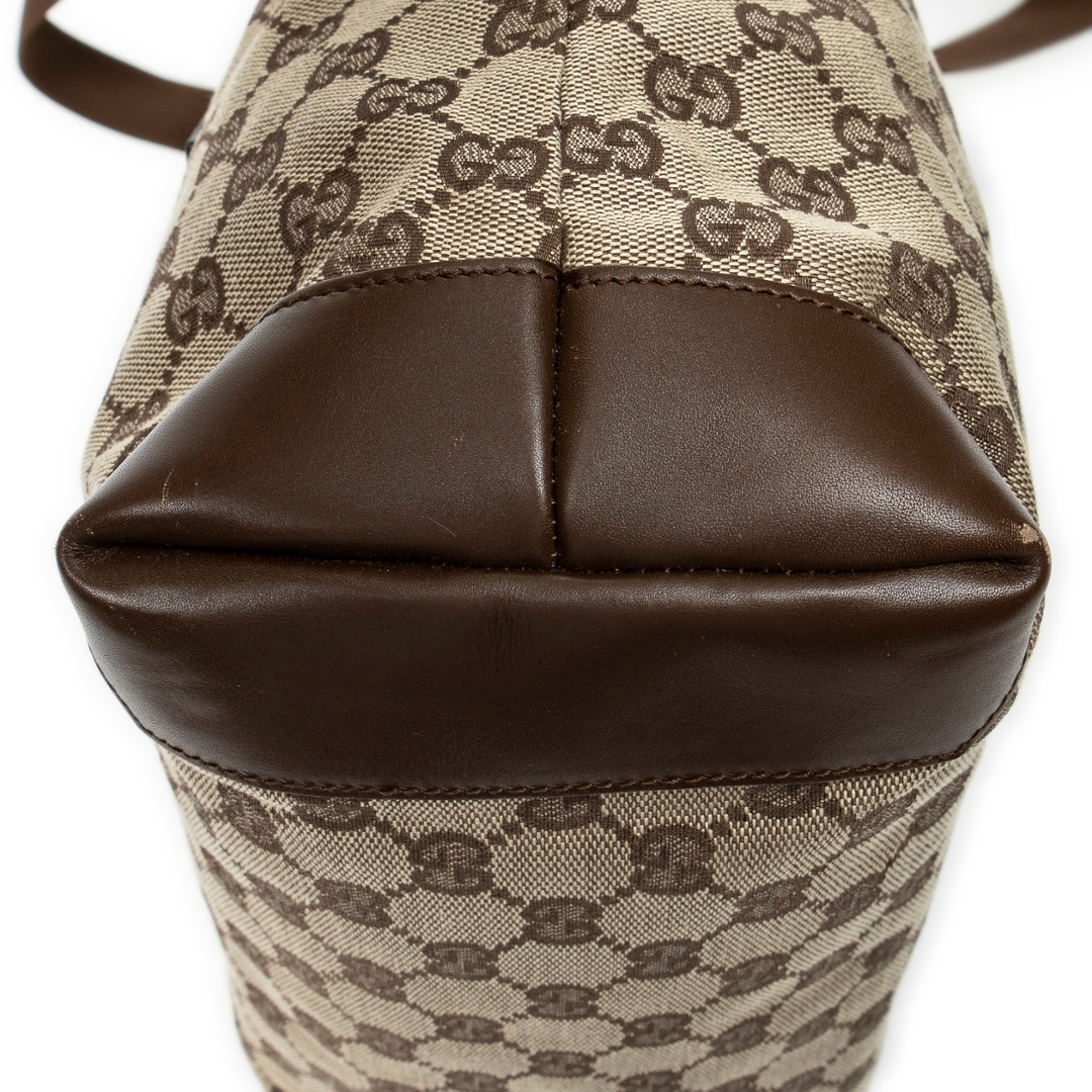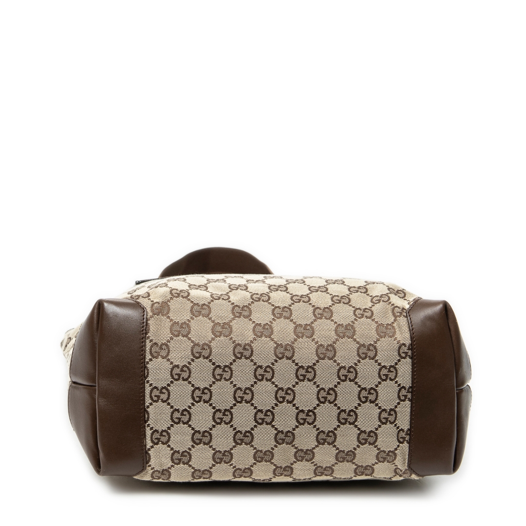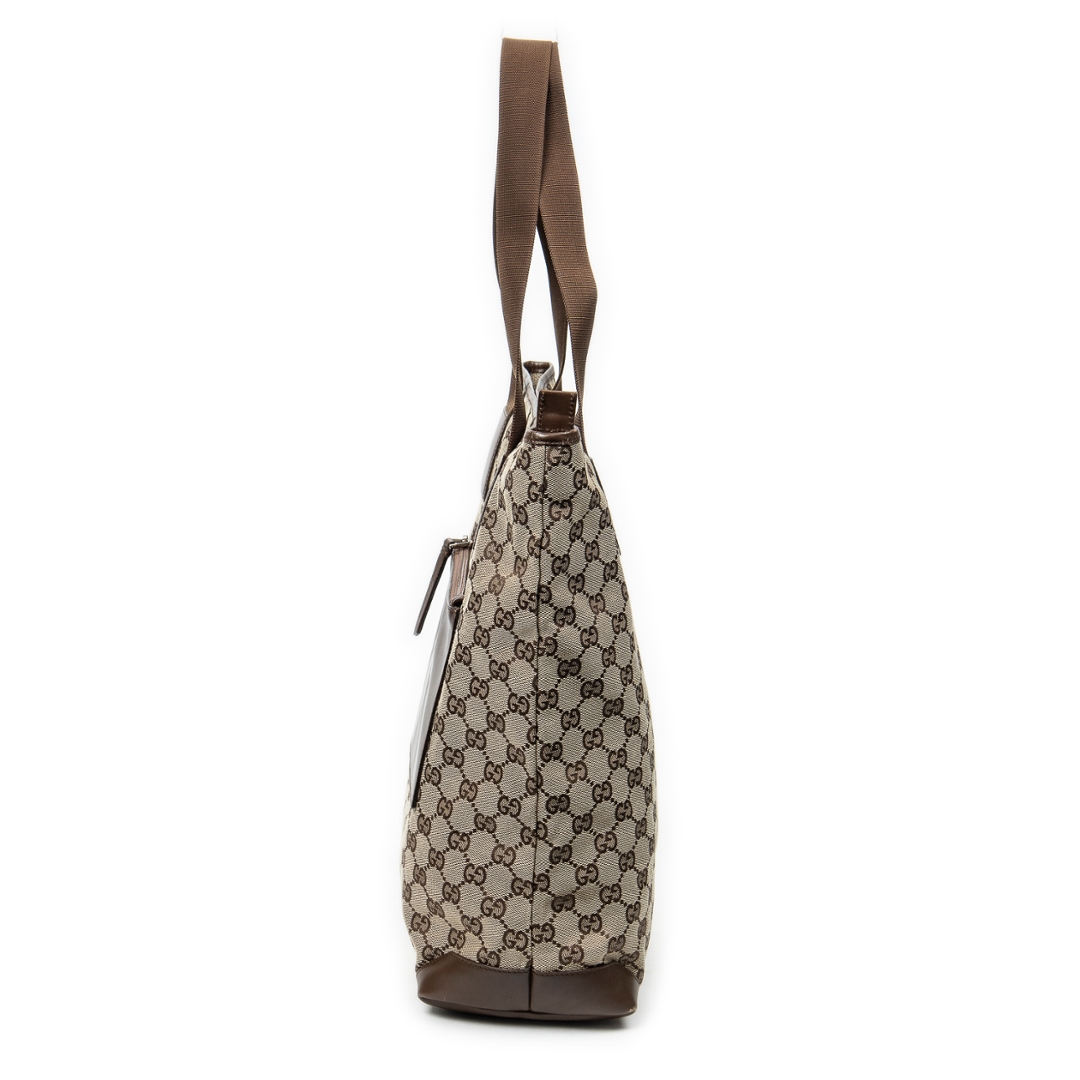 A vintage Gucci beige/brown canvas Vertical Zip Tote bag with a certificate of authenticity, Approximately 33cm height, 26cm width.