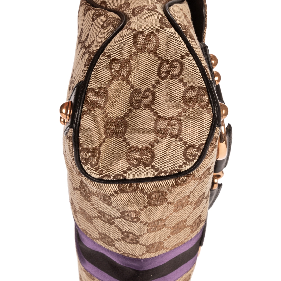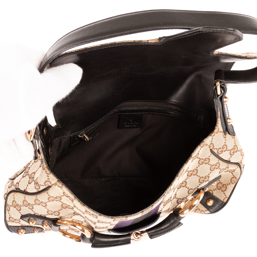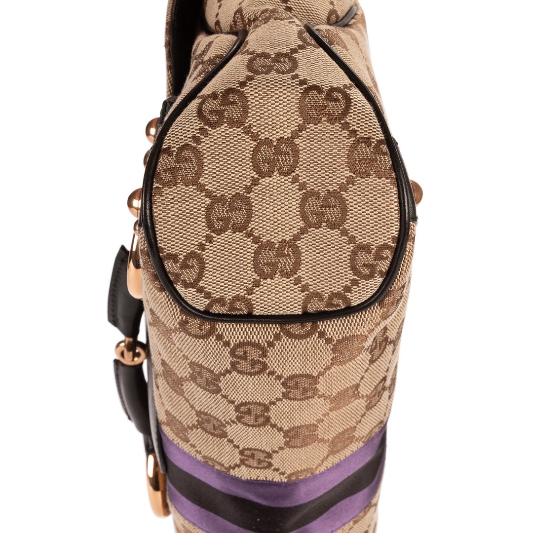 A vintage Gucci beige canvas Vintage Horsebit bag with a certificate of authenticity, Approximately 21cm height, 32cm width.