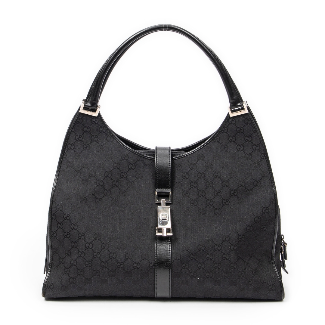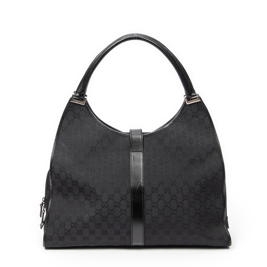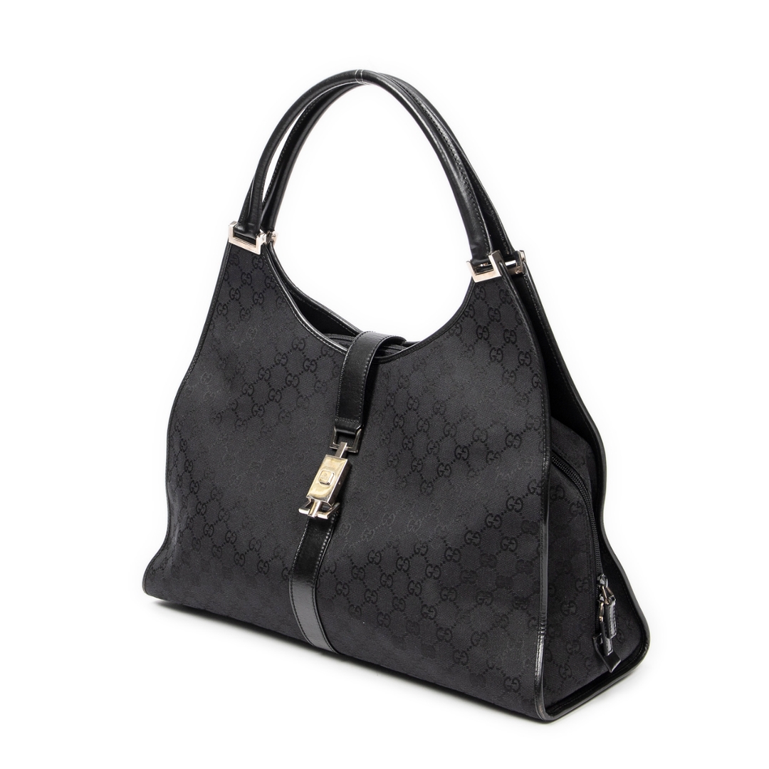 A vintage Gucci black canvas Vintage Large Jackie bag with a certificate of authenticity. Approximately 27cm height, 45cm width.