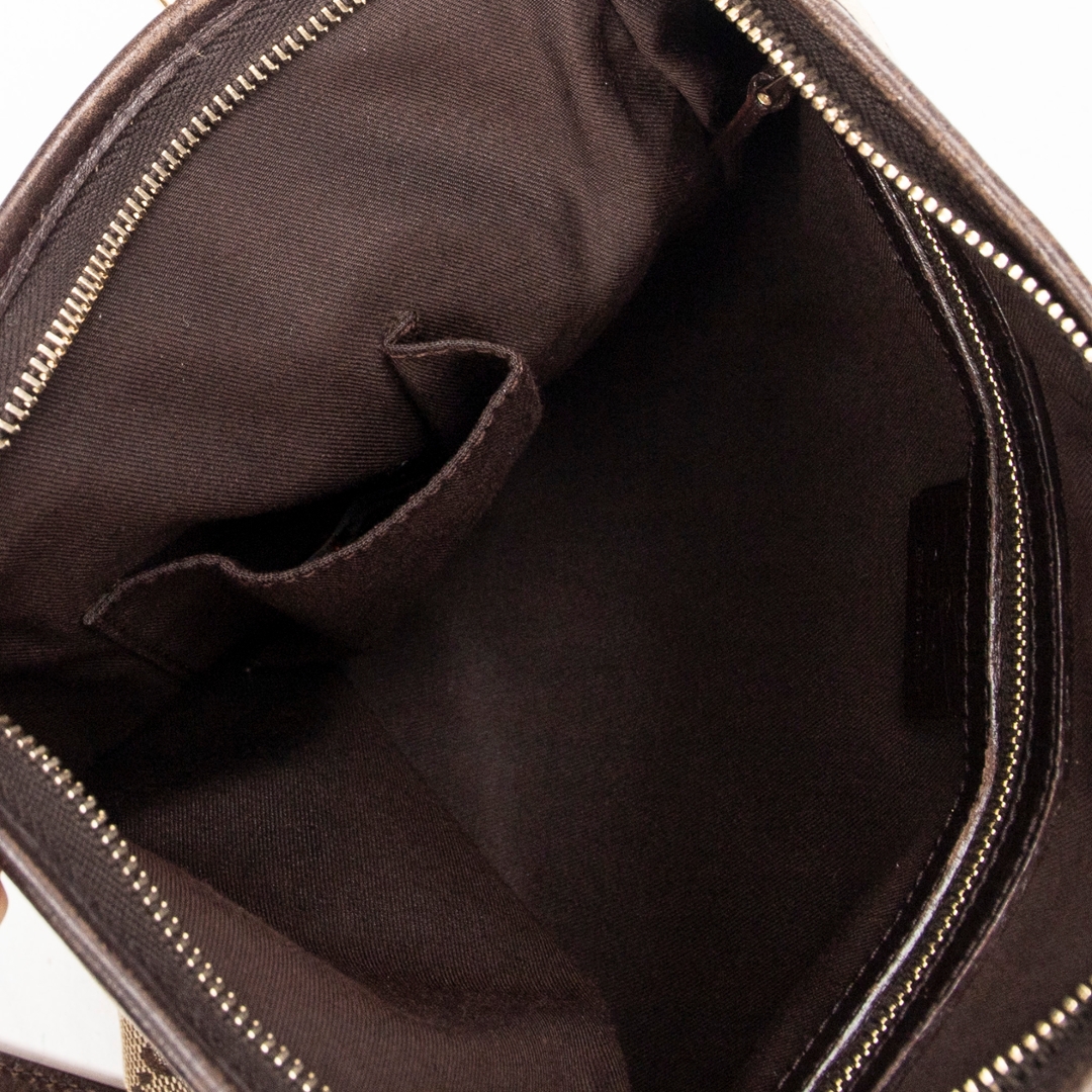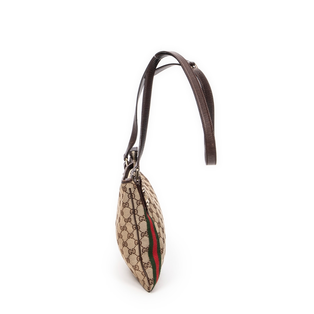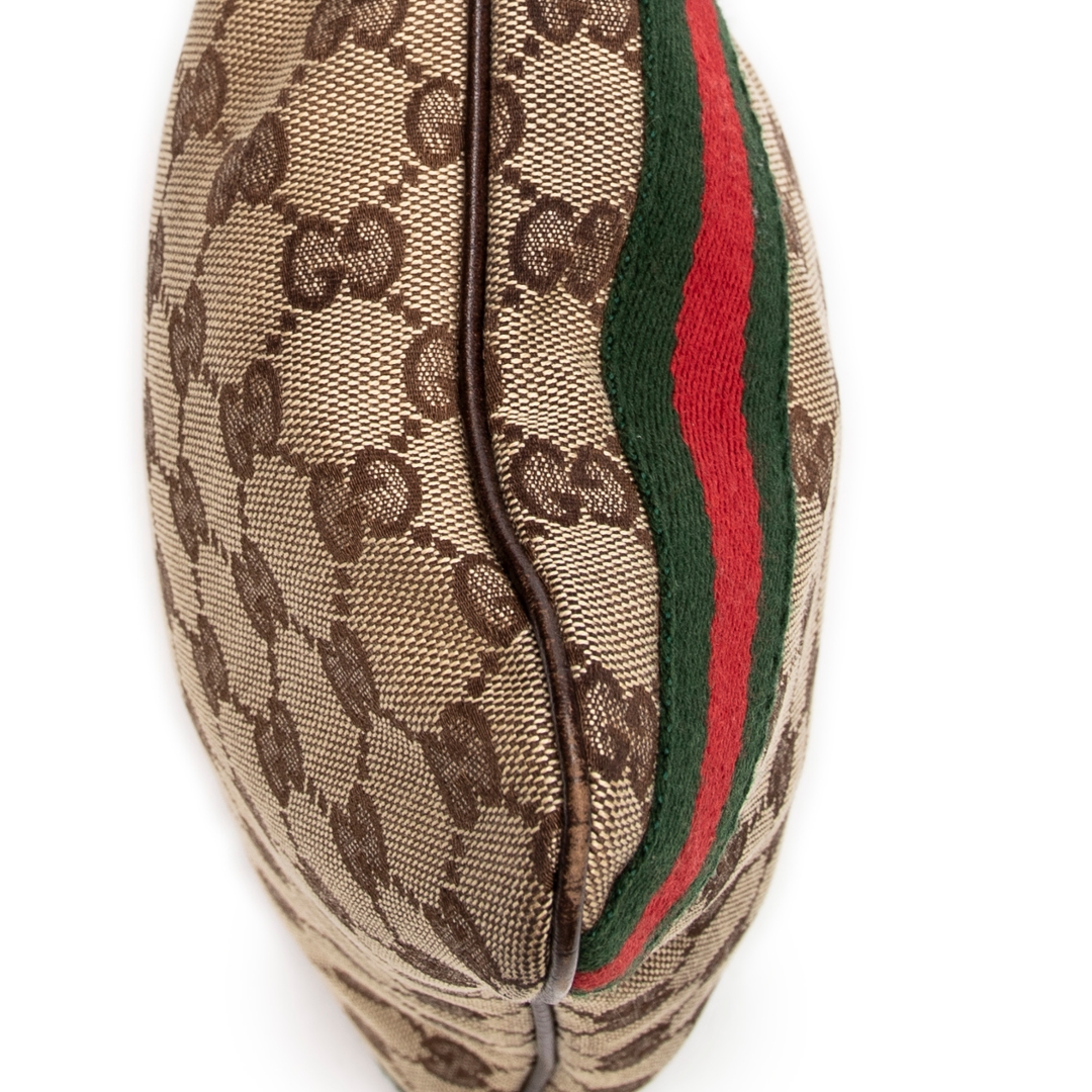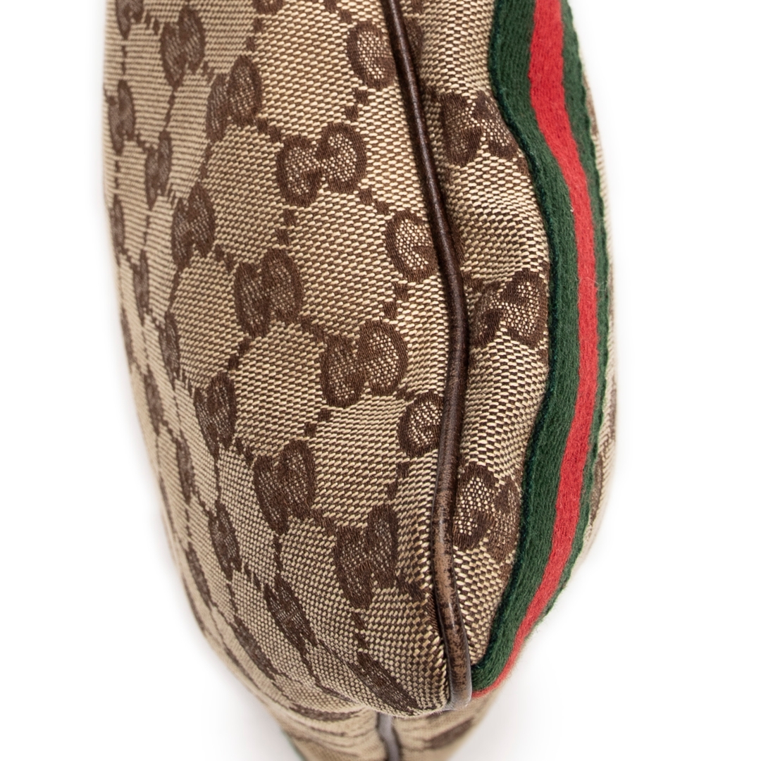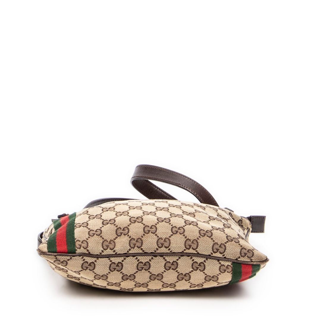 A vintage Gucci brown/beige canvas Web Jolicoeur Crossbody bag with a certificate of authenticity. Approximately 24cm height, 26cm width.