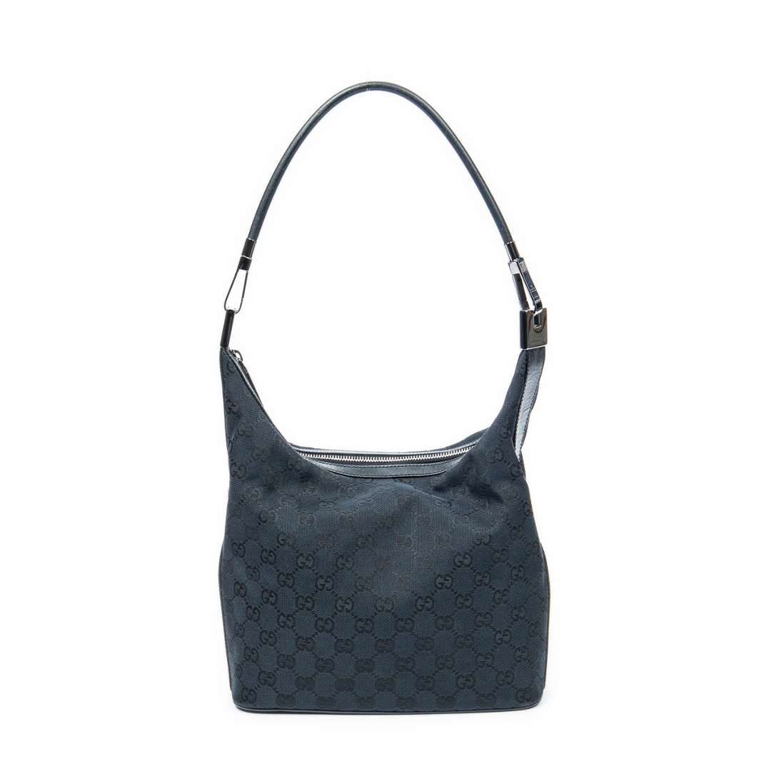 A vintage Gucci black canvas Zip Hobo bag with a certificate of authenticity, Approximately 19cm height, 23cm width.