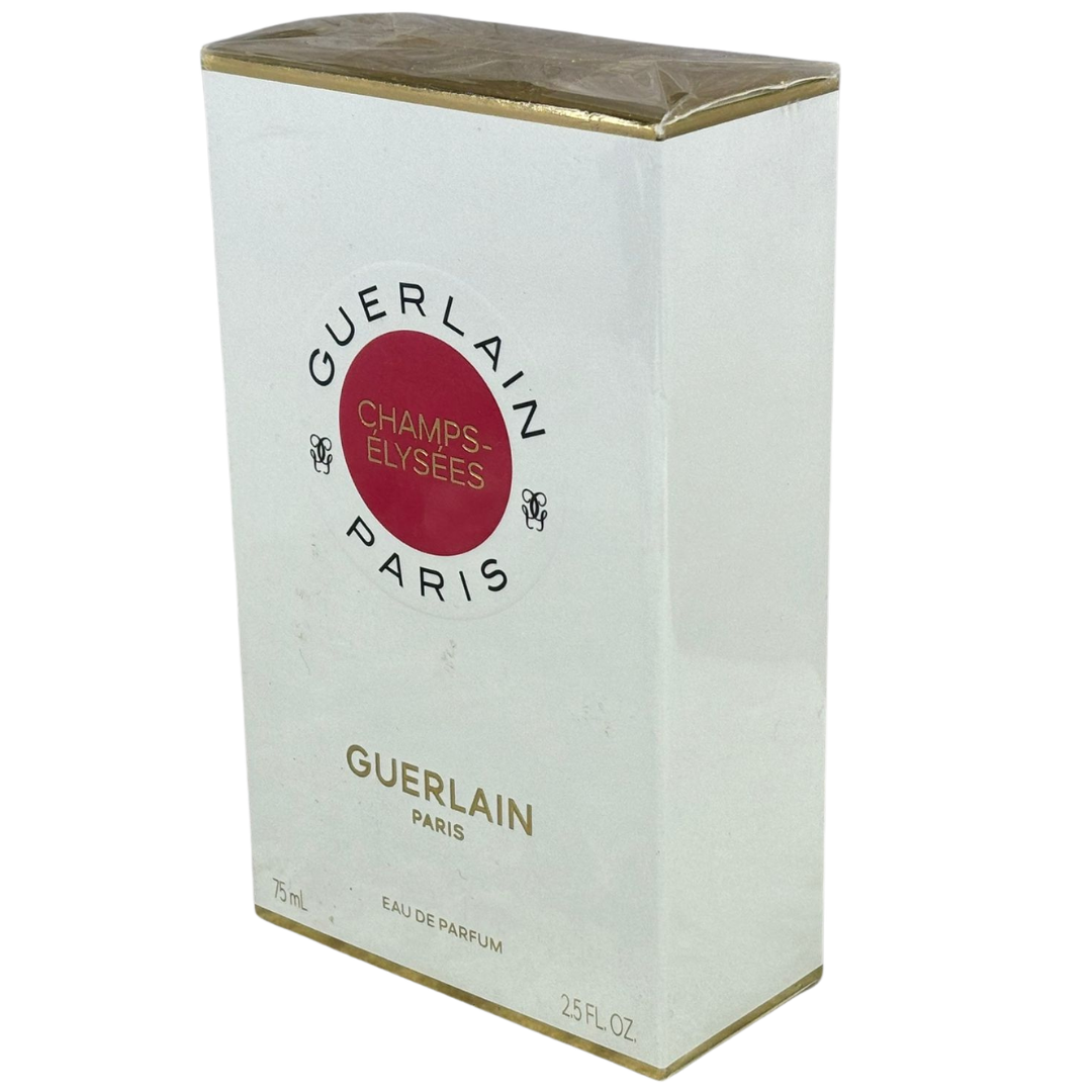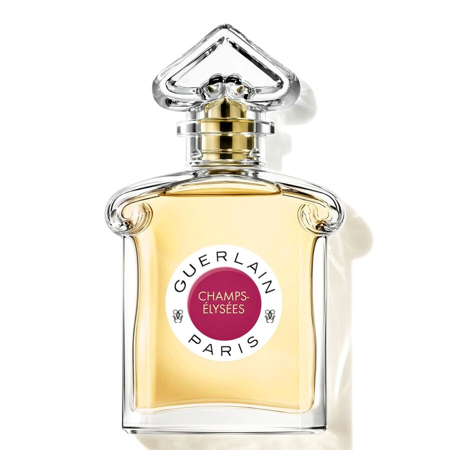 A 75ml bottle of Guerlain Champs-Élysées Eau De Parfum, a bright and elegant fragrance inspired by the iconic Parisian avenue. It opens with a luminous blend of blackcurrant and almond blossom, delivering a fresh yet slightly sweet introduction that feels vibrant, refined, and effortlessly feminine.