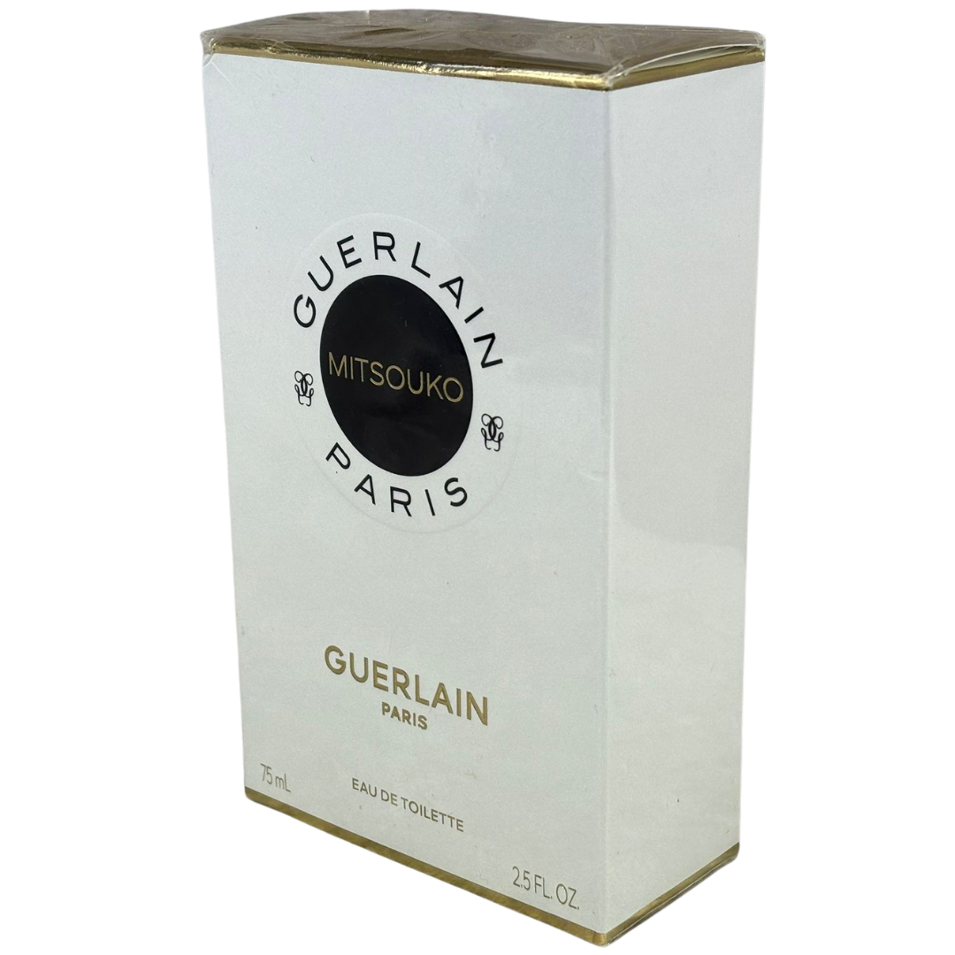 A 75ml bottle of Guerlain Mitsouko Eau De Toilette, a timeless and sophisticated fragrance that stands as one of the house’s most iconic creations. It opens with a refined blend of citrus and soft peach, delivering a fresh yet subtly fruity introduction that immediately conveys depth and classic elegance.