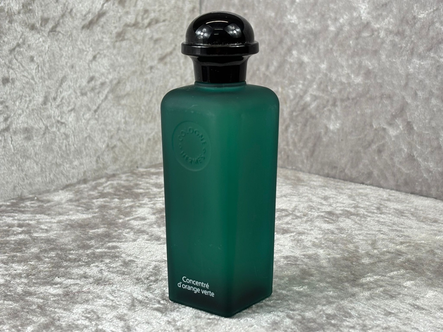 A bottle of Hermes - Concentre d'orange verte Eau De Toilette.
